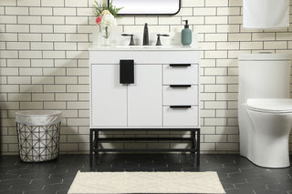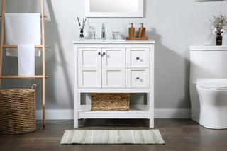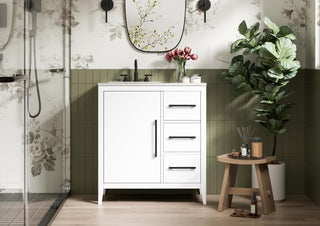 32 inch Single Bathroom vanity in vintage mint with ivory white engineered marble