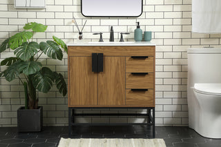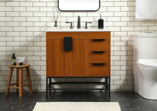 36 inch Single Bathroom Vanity in Chestnut Brown with backsplash
