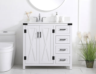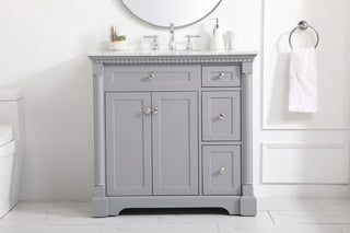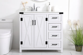 36 inch Single Bathroom vanity in Antique White with ivory white engineered marble