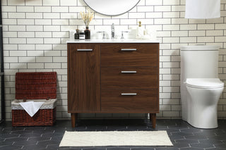 36 inch Single Bathroom vanity in Antique Beige with ivory white engineered marble