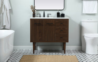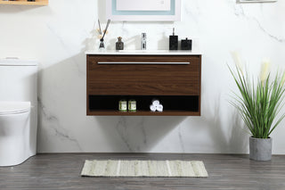 36 inch Single Bathroom vanity in Walnut with ivory white engineered marble