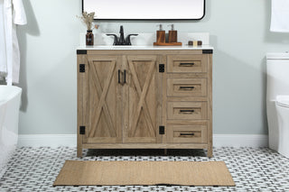 42 inch Single Bathroom vanity in Teak with ivory white engineered marble
