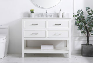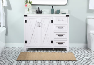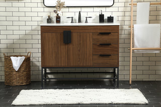 42 inch Single Bathroom vanity in Walnut with ivory white engineered marble