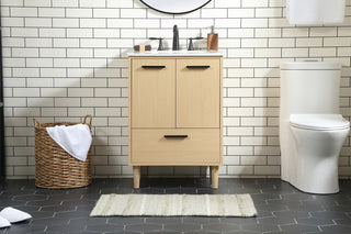 24 inch Single Bathroom vanity in Brown with ivory white engineered marble