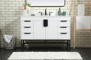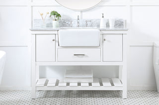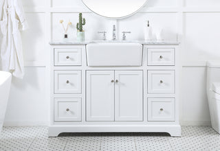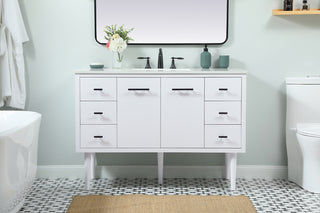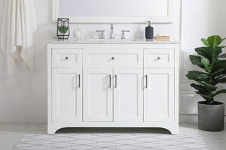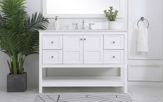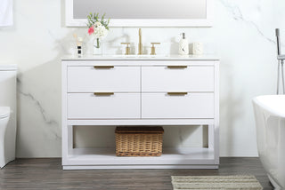 48 inch Single Bathroom vanity in White with ivory white engineered marble