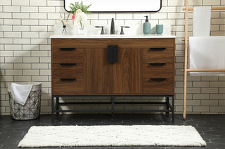 48 inch Single Bathroom vanity in Walnut with ivory white engineered marble