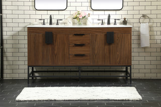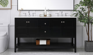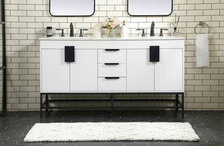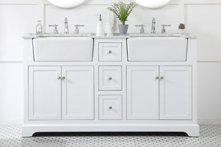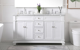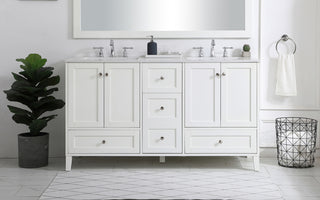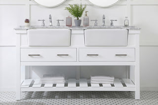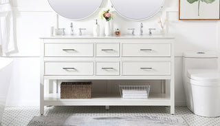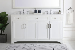 60 inch Double Bathroom vanity in White with ivory white engineered marble