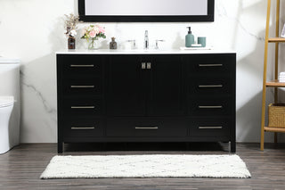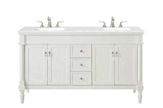 60 inch Single Bathroom vanity in antique white with ivory white engineered marble