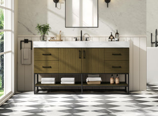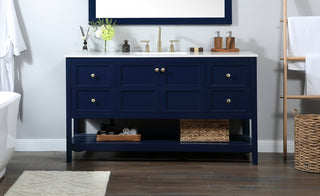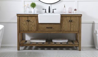 60 inch Single Bathroom vanity in Light Antique Beige with ivory white engineered marble