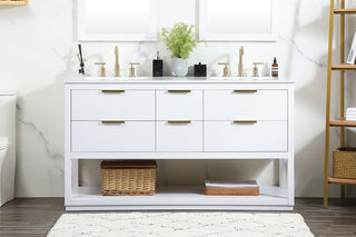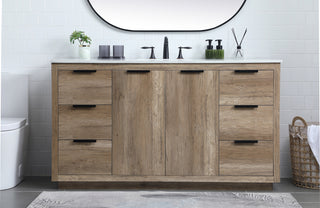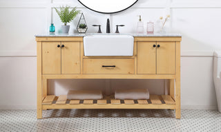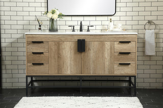 60 inch Single Bathroom vanity in Teak with ivory white engineered marble