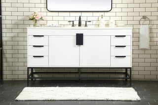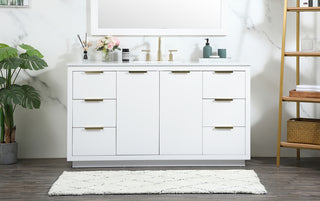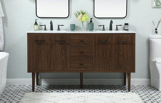 60 inch Single Bathroom vanity in Walnut with ivory white engineered marble