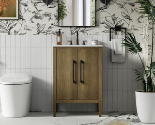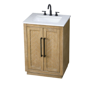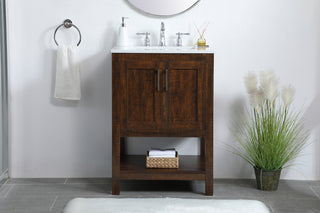 24 inch Single Bathroom vanity in Brown with ivory white engineered marble