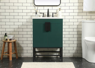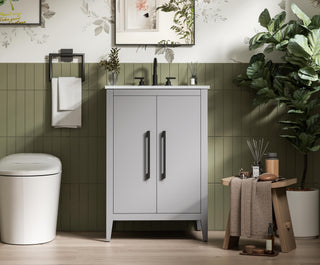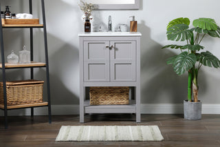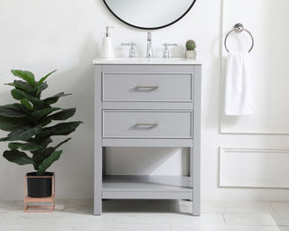 24 inch Single Bathroom vanity in Light Grey with ivory white engineered marble