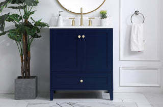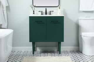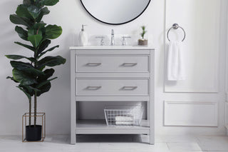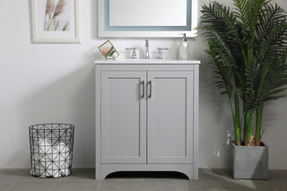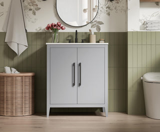 30 inch Single Bathroom vanity in Light Grey with ivory white engineered marble