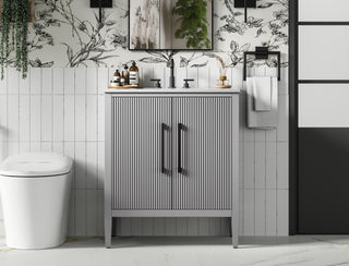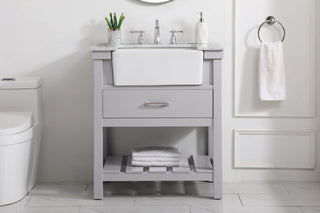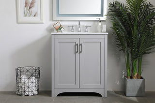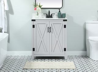 30 inch Single Bathroom vanity in Grey with ivory white engineered marble