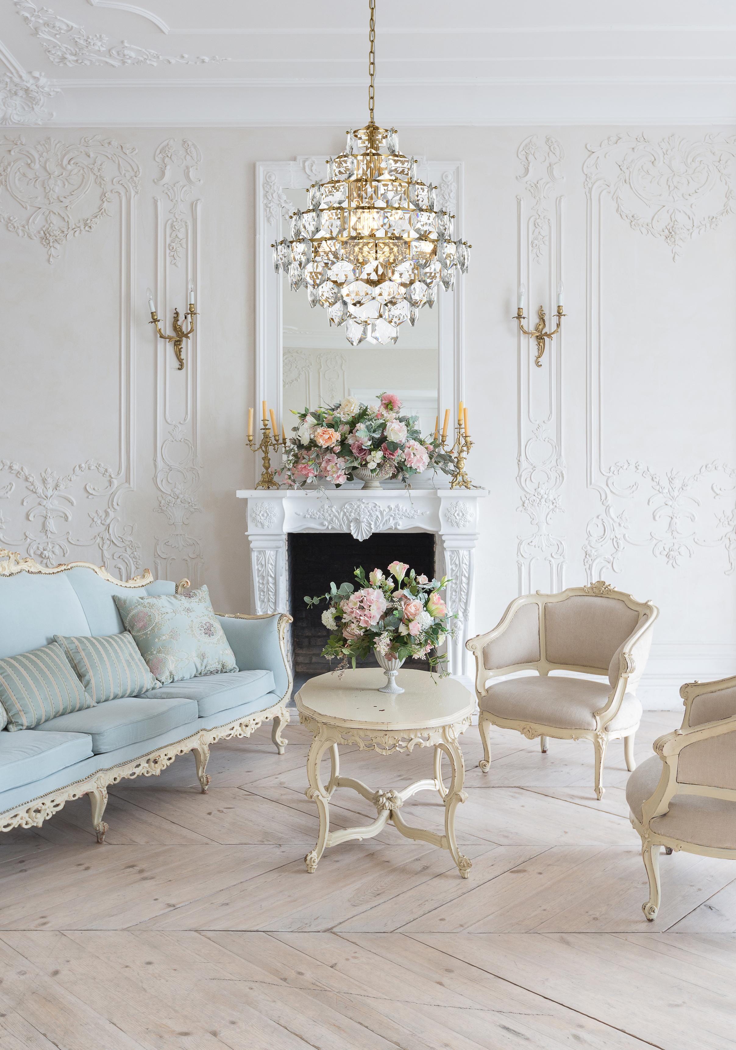 Transform your space with this cascading multi-tier pendant light that combines striking design with meticulous craftsmanship. Crafted from a sturdy iron frame and adorned with six-sided faceted crystals, this lighting piece exudes charm through its ability to diffuse light into a soft, radiant glow. With finishes available in both sleek chrome for a contemporary feel and satin gold for a warmer, refined touch, it complements a range of decor styles. The adjustable height, from 34 inches to 94 inches with the included 59-inch chain, ensures it fits seamlessly in any setting. Equipped with fifteen E12 sockets and dimmable functionality, you can customize the lighting to suit your mood or occasion. Its matching canopy and chain finish complete the cohesive design, making it perfect for kitchens, dining rooms, living rooms, or offices. A statement piece that transforms your space into a work of art, this pendant is the perfect blend of style and functionality.