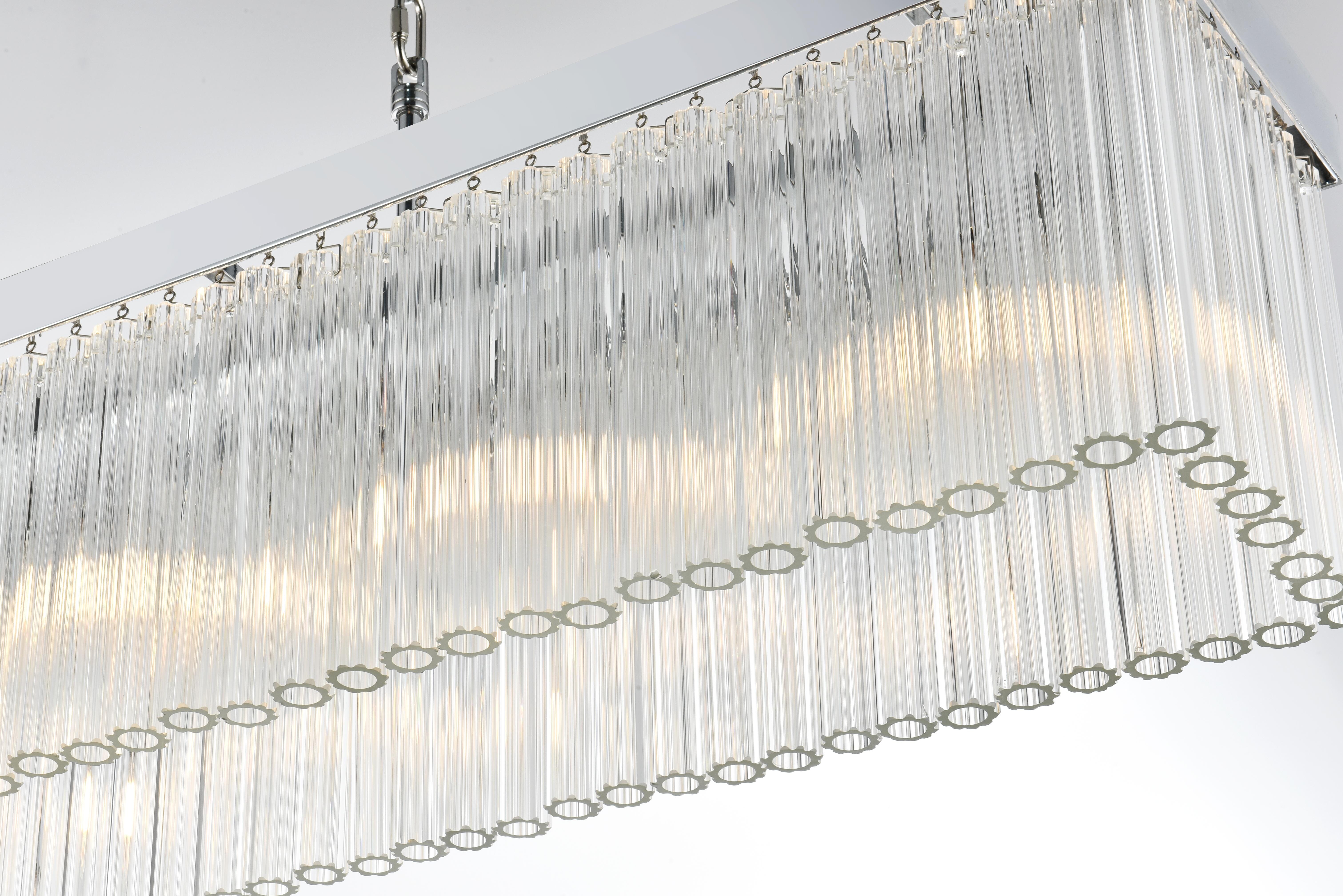 Turn your space into a glowing masterpiece with this striking pendant light, crafted from durable iron and shimmering clear ribbed glass. The cascading layers create a stunning interplay of light and shadow, refracting illumination into a radiant display that transforms your space into an illuminated work of art. Available in chrome for a sleek, contemporary aesthetic, black for bold contrast, and satin gold for an inviting warmth, this pendant light is as versatile as it is beautiful. Whether you choose a single tier for minimalist charm, two tiers for balanced depth, three tiers for bold presence, or four tiers for show-stopping grandeur, there’s an option for every setting. Featuring both round and rectangular frame designs, this fixture adapts to any space with ease. Complete with a matching canopy and chain, and fully dimmable for customized lighting, this pendant pairs perfectly with the coordinating single-tier flush mount and wall sconce collection, ensuring a cohesive, radiant design throughout your home or office. Please note: light bulbs are sold separately.