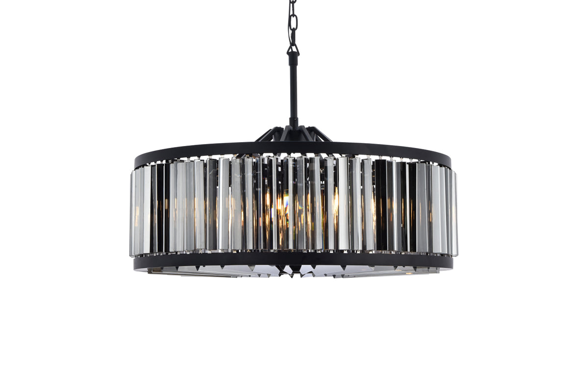 Chelsea 10 light Matte Black Chandelier Silver Shade (Grey) Royal Cut Crystal