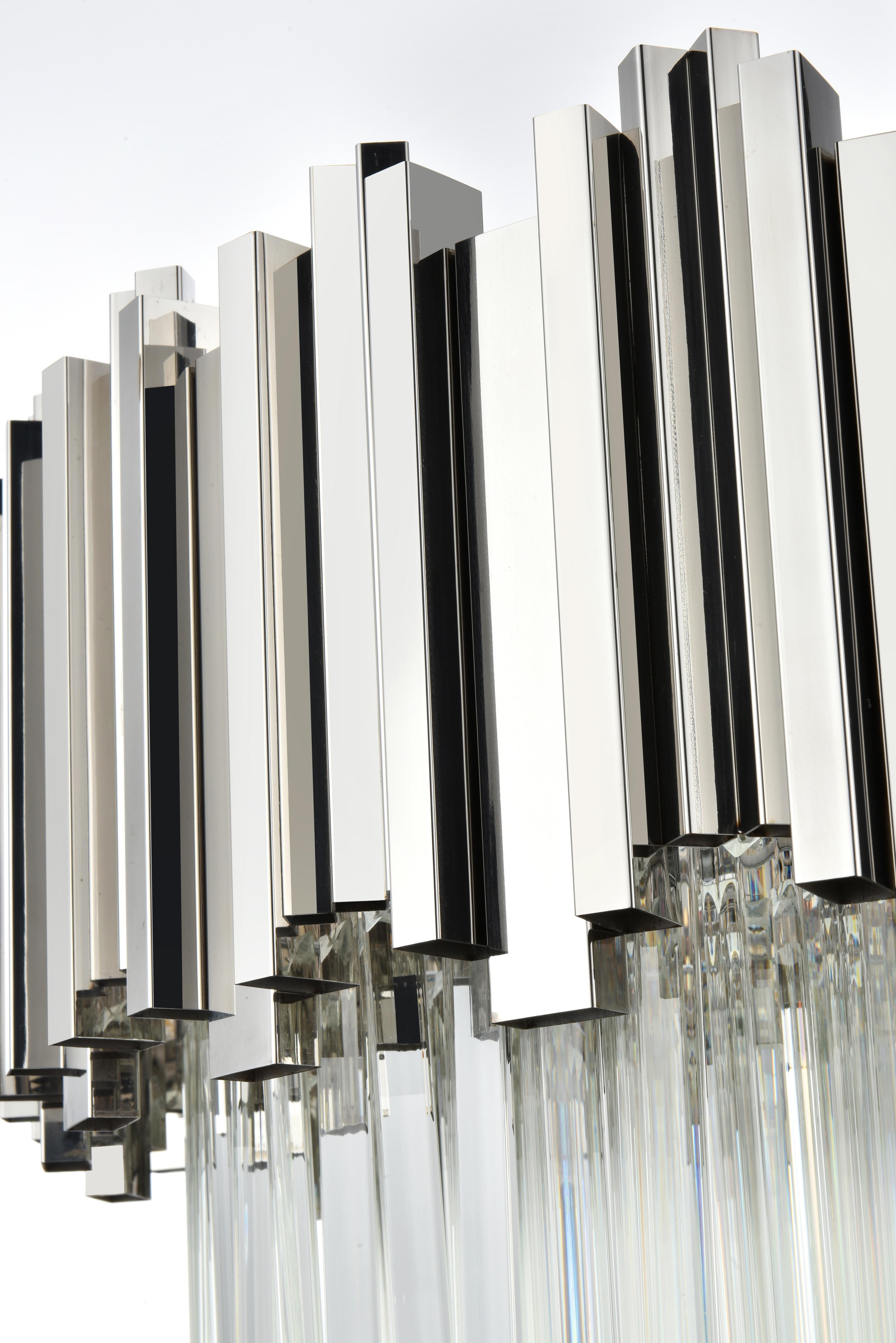 Transform your space with this stunning chandelier, a dynamic fusion of iron and staggered clear glass that exudes contemporary style and architectural artistry. The layered glass refracts light beautifully, creating a radiant display of glowing brilliance that fills the room with warmth and sophistication. The staggered arrangement of the metal and glass adds depth and dimension, making this chandelier an eye-catching centerpiece. Fully dimmable, it allows you to adjust the ambiance to suit any mood, from bright and vibrant to soft and inviting. Available in satin gold for a warm, luxurious vibe, chrome for sleek modernity, and black for bold, dramatic contrast, this fixture comes in various sizes to perfectly complement any space. Complete with a matching canopy, it’s an ideal choice for dining rooms, living rooms, or offices. Add a touch of refined geometry to your décor and bask in the brilliance of this radiant design.