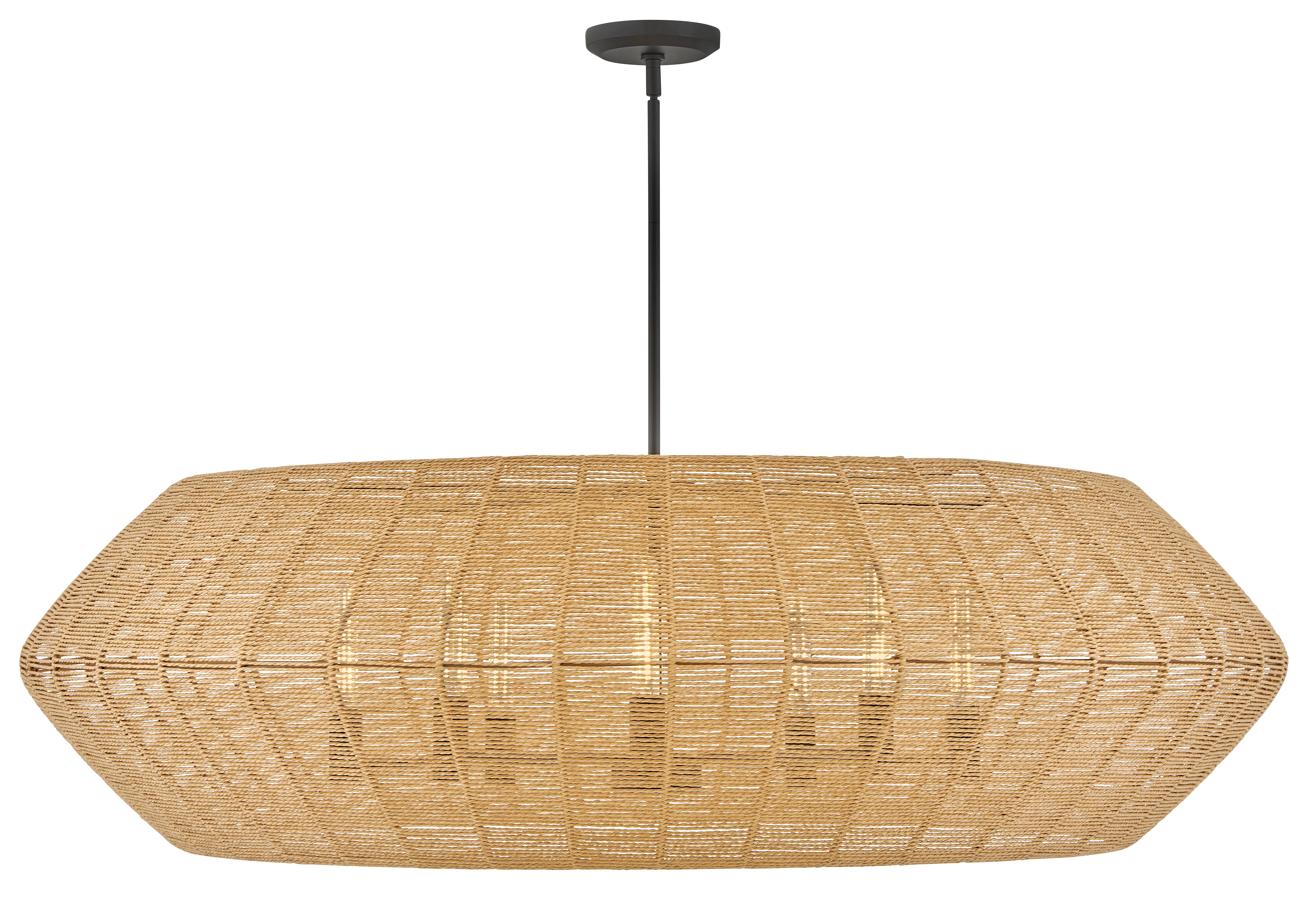 Luca's coastal vibe is permeated with an exotic appeal. The bold pendant showcases a robust, woven drum shade, and a fully finished cluster for plenty of functional light offered in a variety of finish options. Luca is part of the Lisa McDennon Collection.