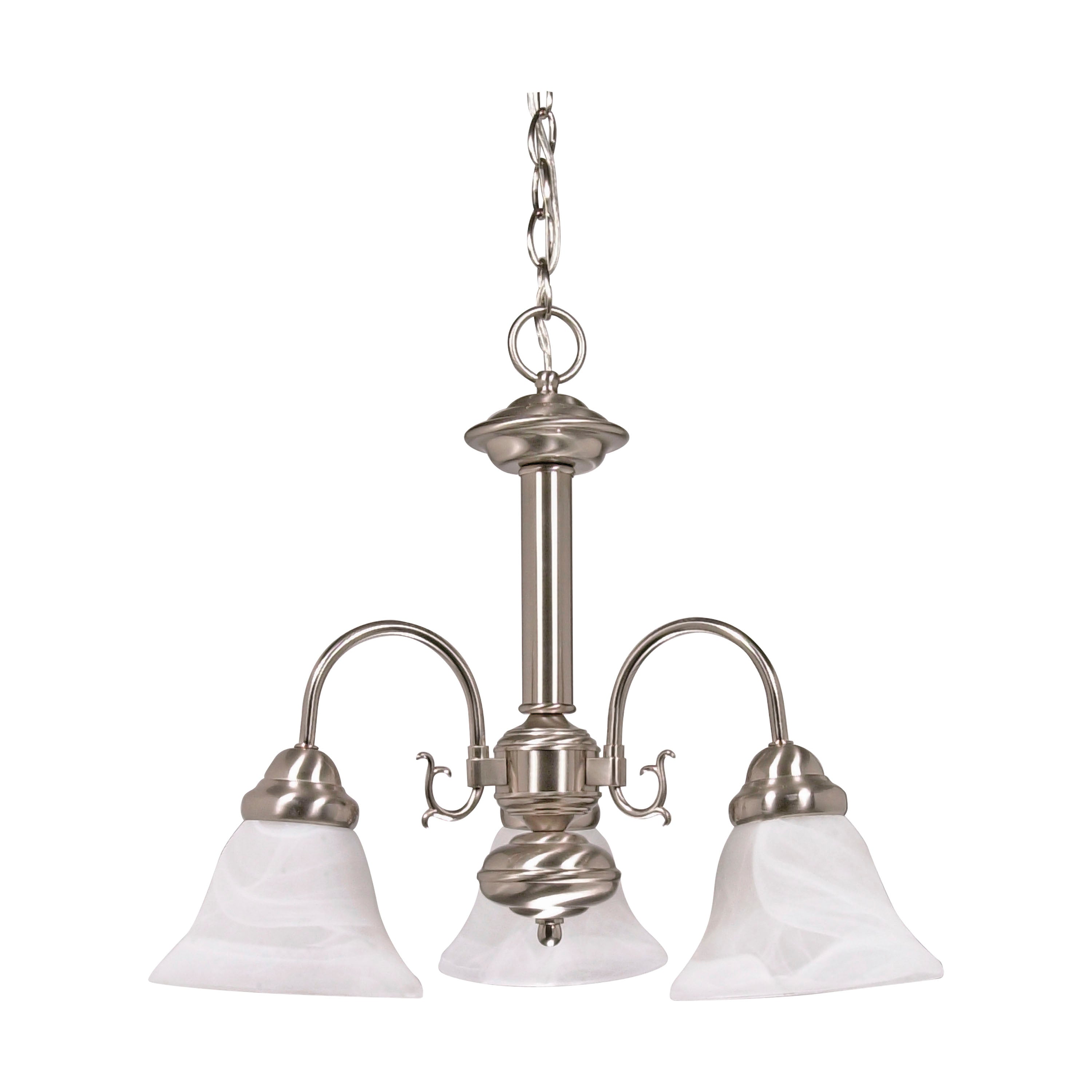 The Ballerina 3-light, 20 inch chandelier is a stylish lighting solution for the home. Illuminate hallways, bathrooms, and living rooms with this brushed nickel chandelier featuring alabaster glass bell shades. Elegant and traditional, this 3 light chandelier adds sophistication to any home.