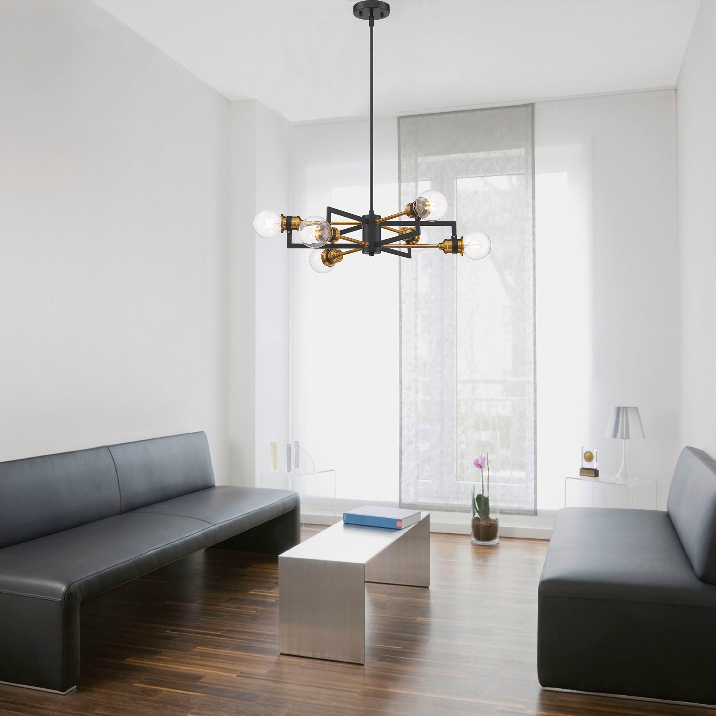 The Intention 6 light chandelier is an elegant lighting solution for the home. This six light chandelier features a warm brass and black finish with clear glass, perfect for adding distinction and illumination to living rooms, dining rooms, and foyers. Stylish and contemporary, this chandelier adds sophistication to the home.