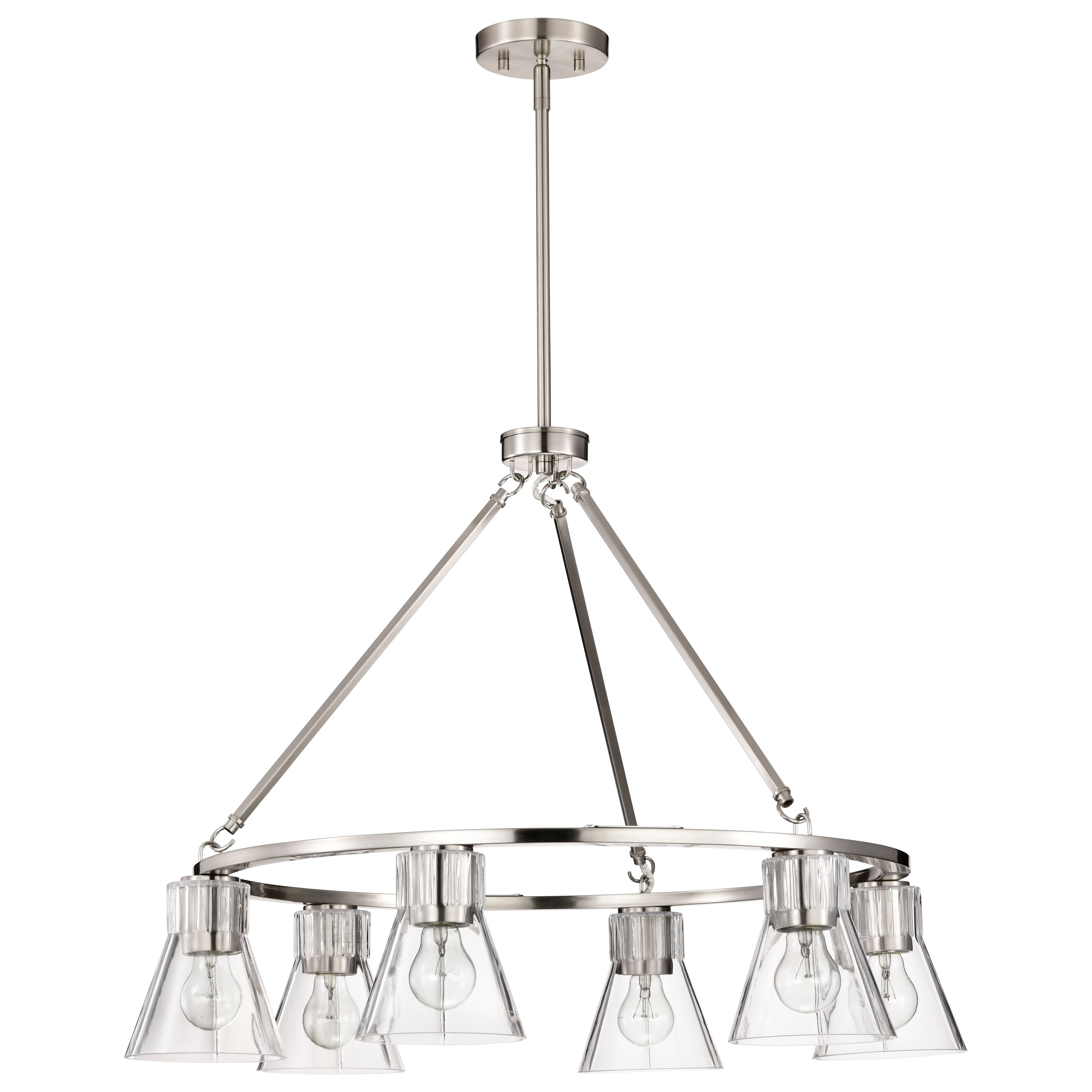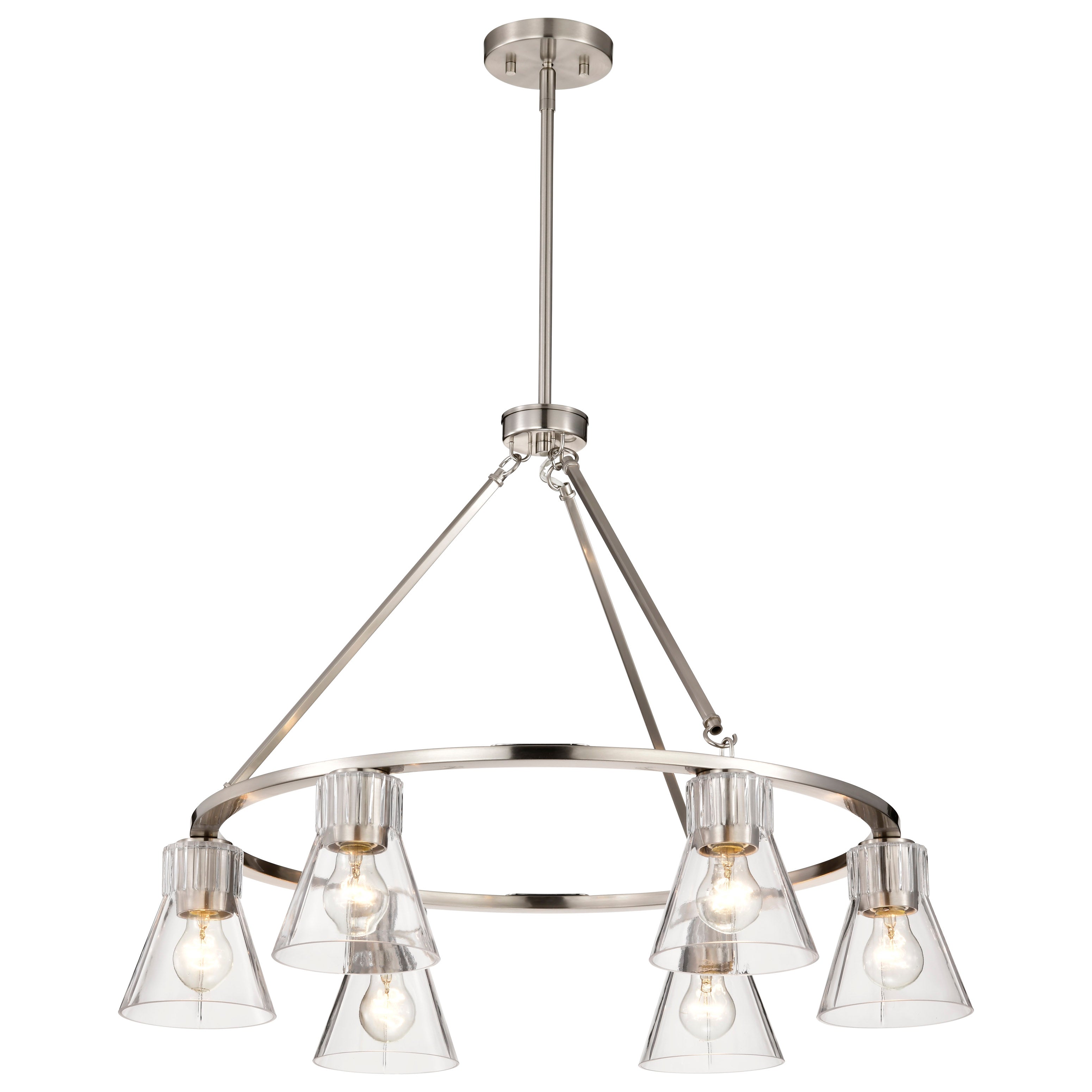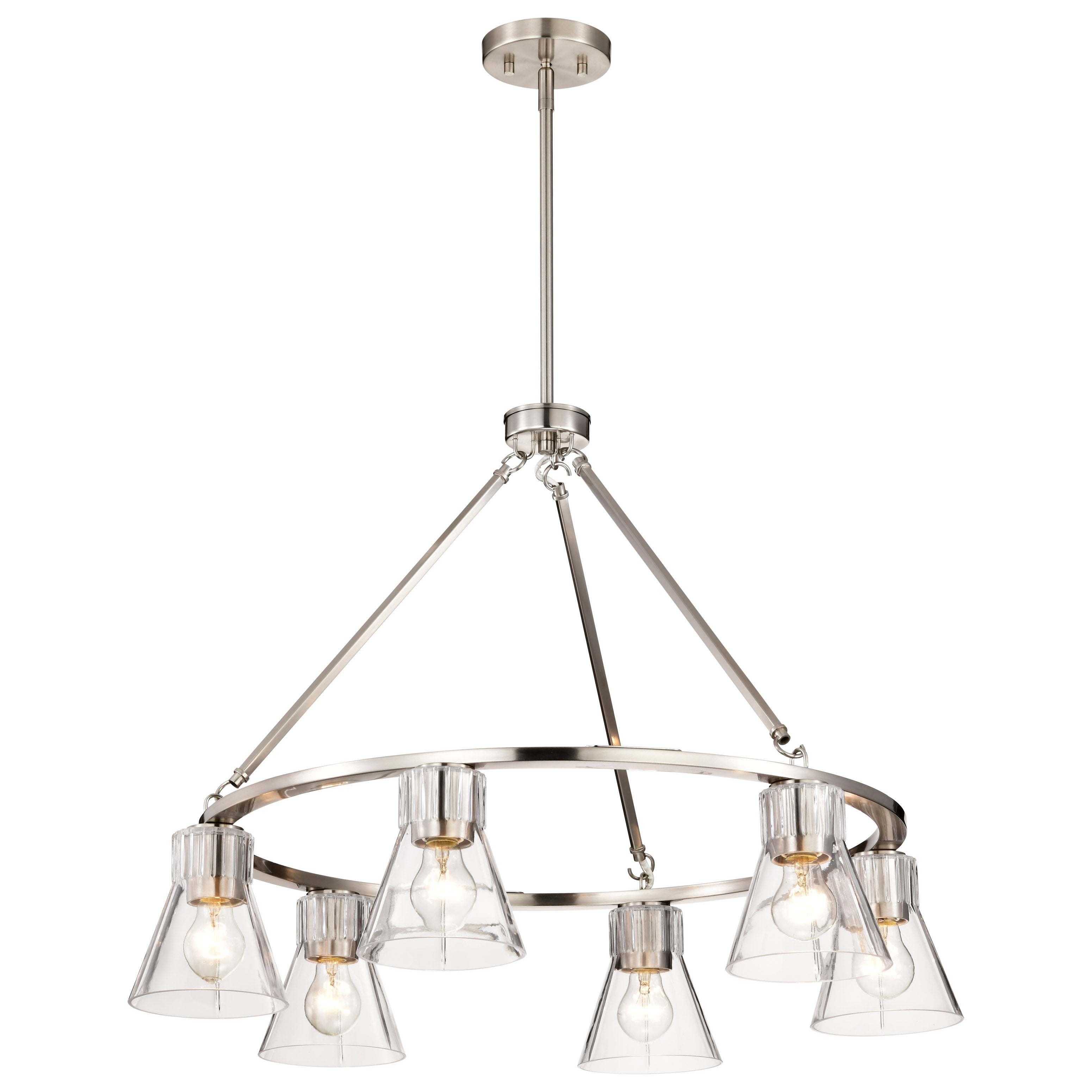 Step back in style and revel in the charm of retro sophistication with the Gianna Collection, a tribute to the bold aesthetics of the seventies. Effortlessly blending style with vintage allure, this collection redefines transitional design. Featuring clear glass shades adorned with intricate ribbed collars, the Gianna Collection is available in brushed nickel or vintage brass finishes, offering the perfect touch of metal and glass. Ideal for those who love a modern twist on retro design, Gianna brings an unforgettable blend of nostalgia and contemporary flair to any space.