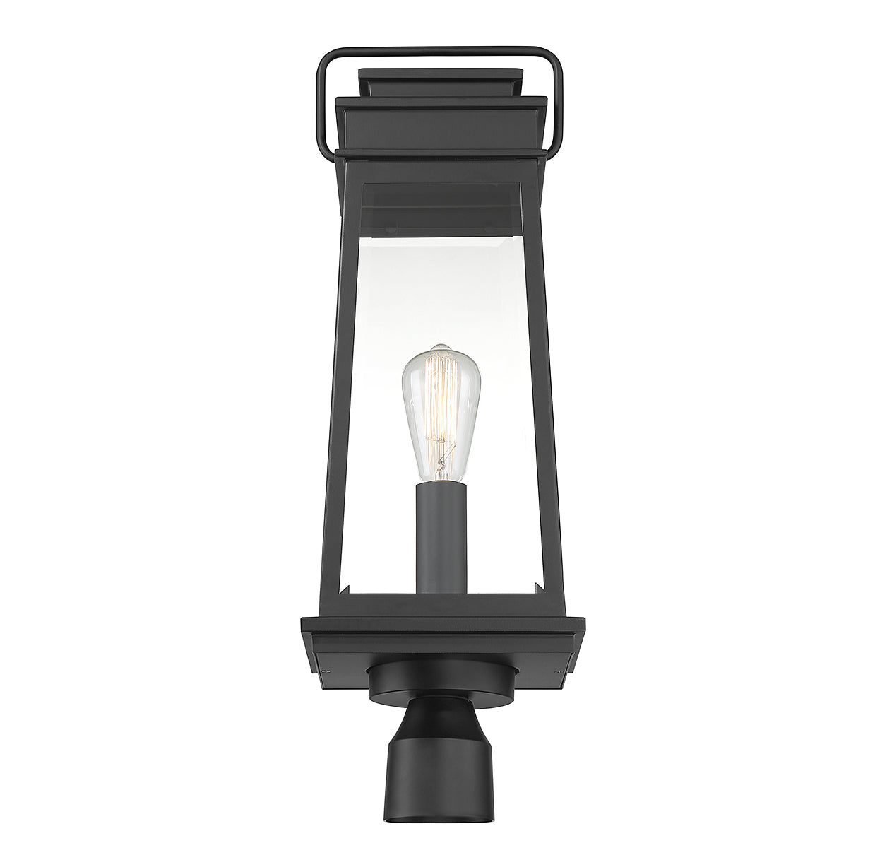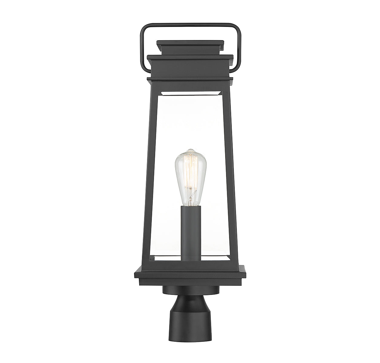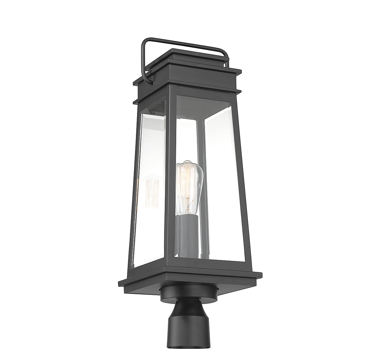 The Savoy House Boone 1-light outdoor post light showcases a classic lantern-style lighting look with panes of clear beveled glass and a matte black finish that adds versatility. Boone is 24.25" in height and 8.25" in width. It uses 1 standard size bulb with a max of 60 watts (bulb not included).
