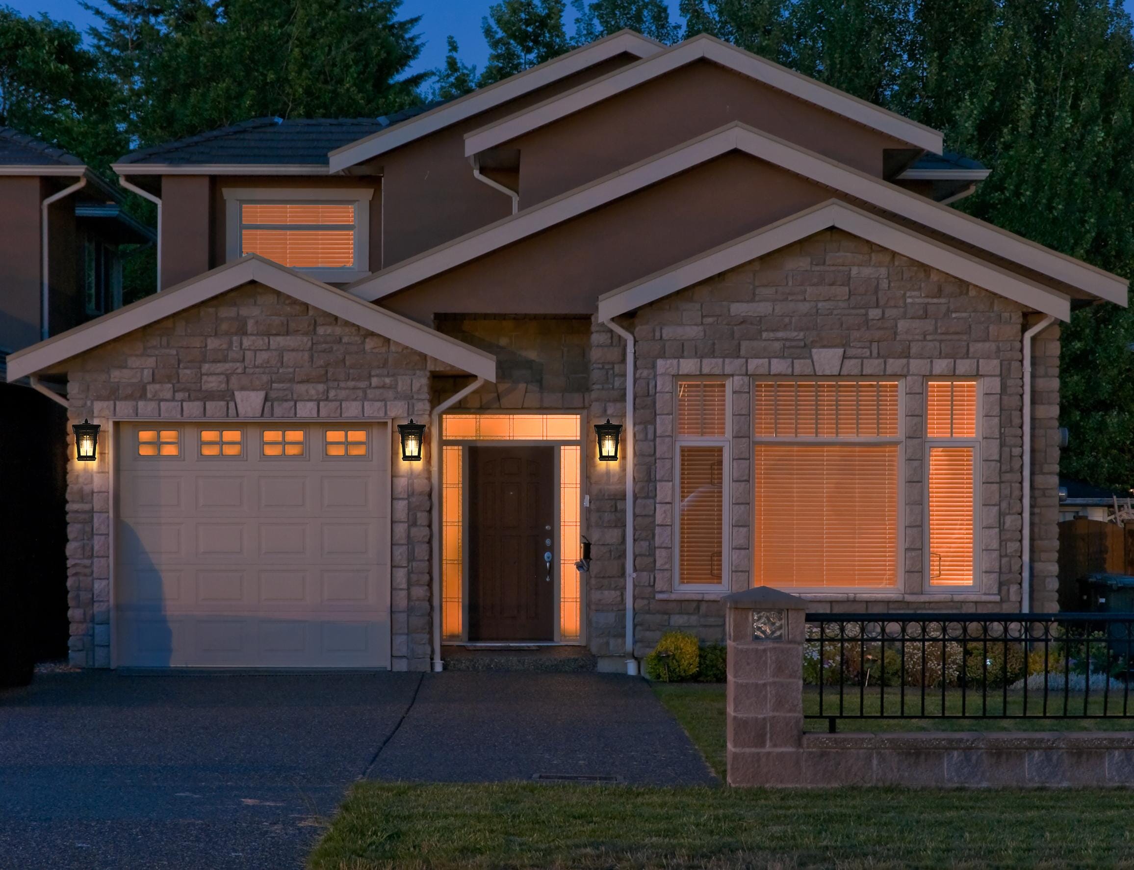 This outdoor wall sconce is a striking blend of classic craftsmanship and contemporary functionality. Crafted from durable aluminum and encased with clear seeded glass, this sconce is both aesthetically pleasing and highly functional. The lantern-style design, featuring a cross-hatch metal framework and peaked roof, brings a timeless charm to your home's exterior. The seeded glass panels create a lovely diffusion of light, providing a warm and welcoming ambiance. The built-in dusk to dawn sensor adds convenience, automatically lighting up your space as night falls and saving energy during daylight hours. With an E26 socket base, this sconce allows for versatile bulb options, adding further to its adaptable design. This sconce seamlessly blends with various architectural styles, making it perfect for any outdoor area—from the front porch to backyard patios.