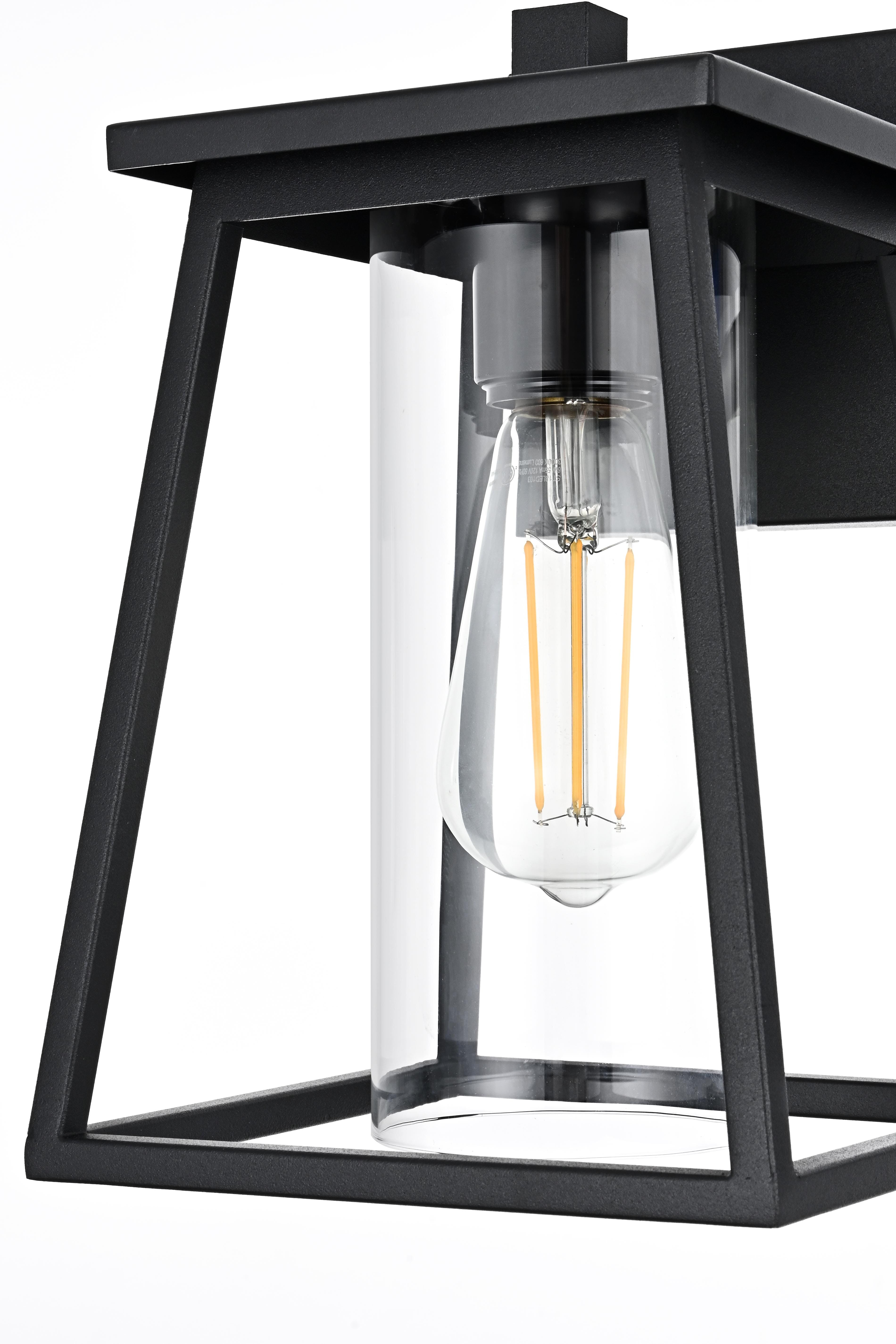 This outdoor wall sconce offers a seamless combination of clean lines and modern styling that makes it an ideal choice for adding character and warmth to any exterior. Made of durable iron with clear glass panels, it frames the light beautifully, allowing it to illuminate your home's exterior with a welcoming glow. The trapezoid frame, open bottom, and minimalist silhouette contribute to a contemporary look that blends well with both modern and transitional outdoor settings. The E26 socket accommodates a wide variety of bulbs, making it customizable to fit your lighting needs, while the triangular loop accent on top adds a charming architectural detail. Perfect for patios, porches, or entryways, this sconce enhances your home's curb appeal and provides practical lighting for any outdoor space.