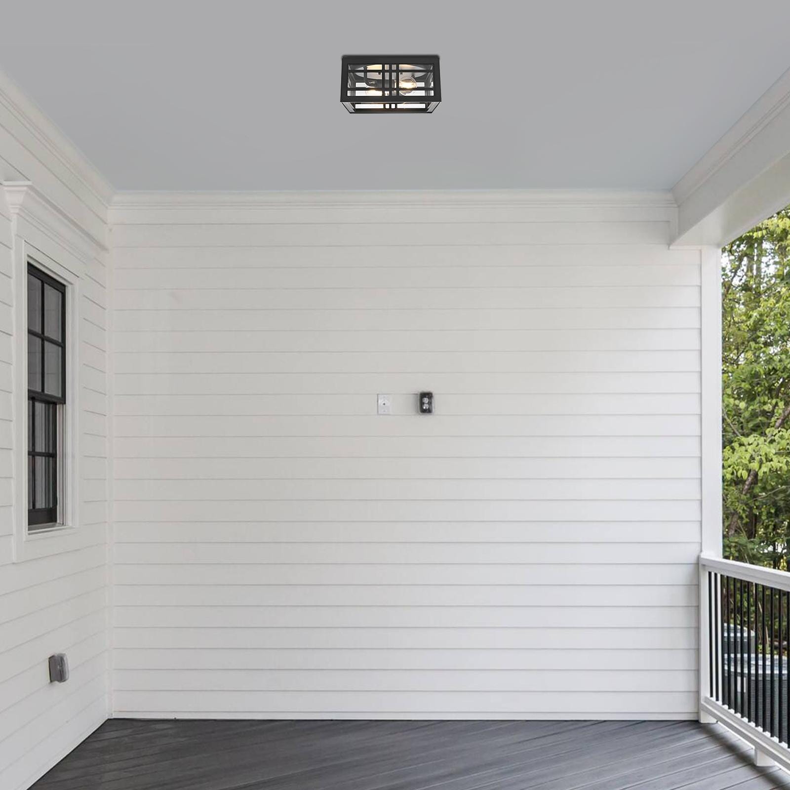 This outdoor flush mount light features a bold geometric metal frame with a grid-inspired design, bringing a structured, architectural presence to covered exterior spaces. The clear glass panels provide full visibility of the bulbs, maximizing illumination while maintaining a defined, modern look. Built from iron and aluminum, the black-finished frame is designed for long-term durability in damp environments. The open-bottom design ensures easy bulb changes, while the flush mount installation makes it ideal for covered patios, porches, breezeways, and entryways. Requiring two medium-base E26 bulbs (not included), this fixture is also dimmable, allowing for adjustable brightness. ETL Damp Rated, this light is built to withstand humidity and moisture while delivering a modern, structured aesthetic for outdoor spaces. Built with marine-grade, corrosion-resistant aluminum, this sconce withstands coastal conditions for long-lasting durability.