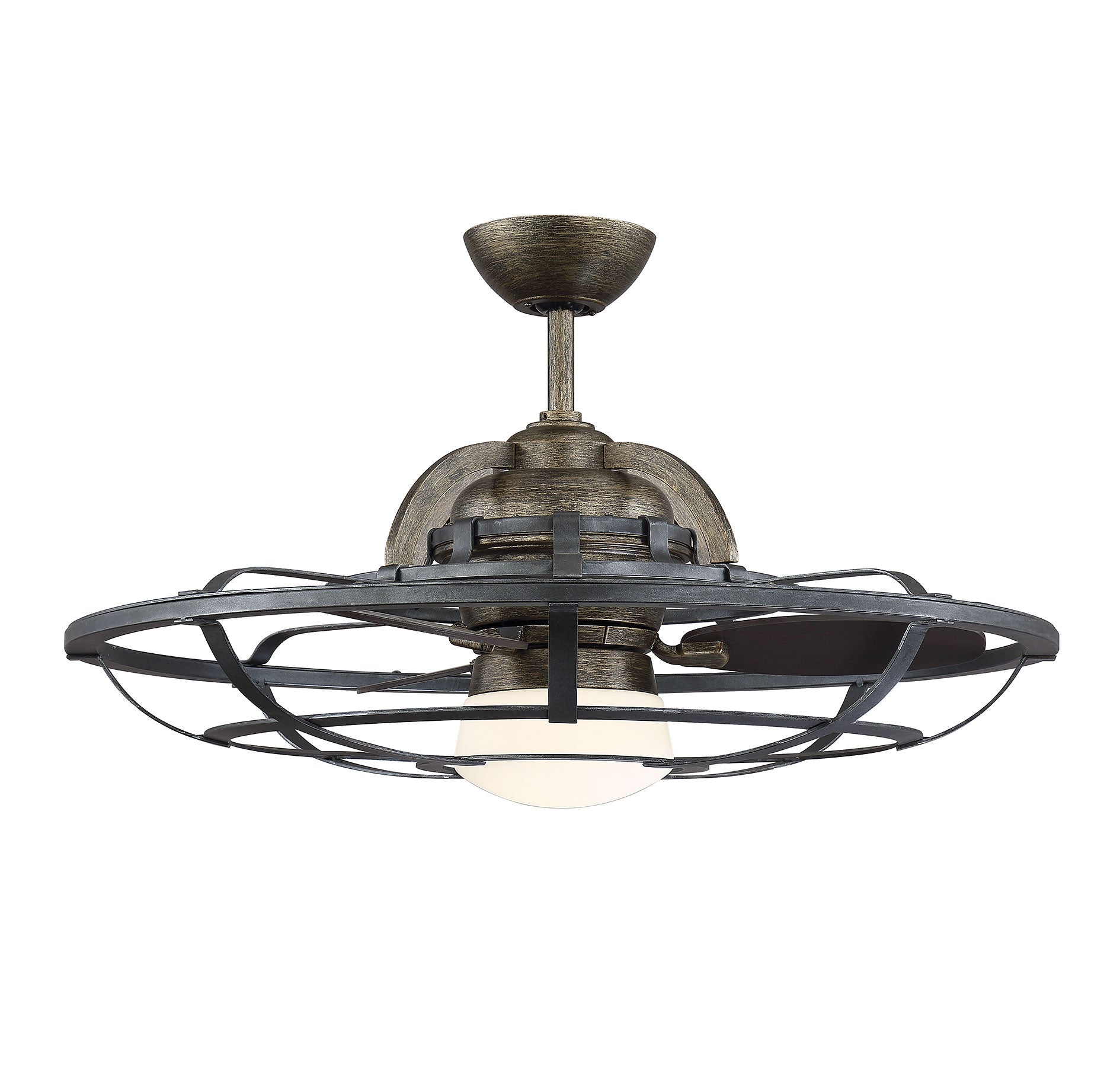 The Savoy House Alsace Fan D'Lier flaunts a chic rustic industrial look inspired by the wine barrels in a French vineyard. It includes a remote control and an integrated LED light source with white etched glass. Reclaimed Wood finish with chestnut blades. Damp area rated, so Alsace can be used in covered outdoor areas. This Fan D'Lier combines the best of ceiling fans and chandeliers in one stylish fixture. It is perfect for adding light and comfort to many spaces, such as living rooms, kitchens, bedrooms, media rooms, wine cellars and home offices. The dark tones of the Reclaimed Wood finish pair well with bronze hardware or can be mixed with hardware in other finishes. Alsace is great for rustic and farmhouse style spaces. When you choose a Savoy House lighting fixture, you can be certain you’ve selected a piece that will withstand the test of time.