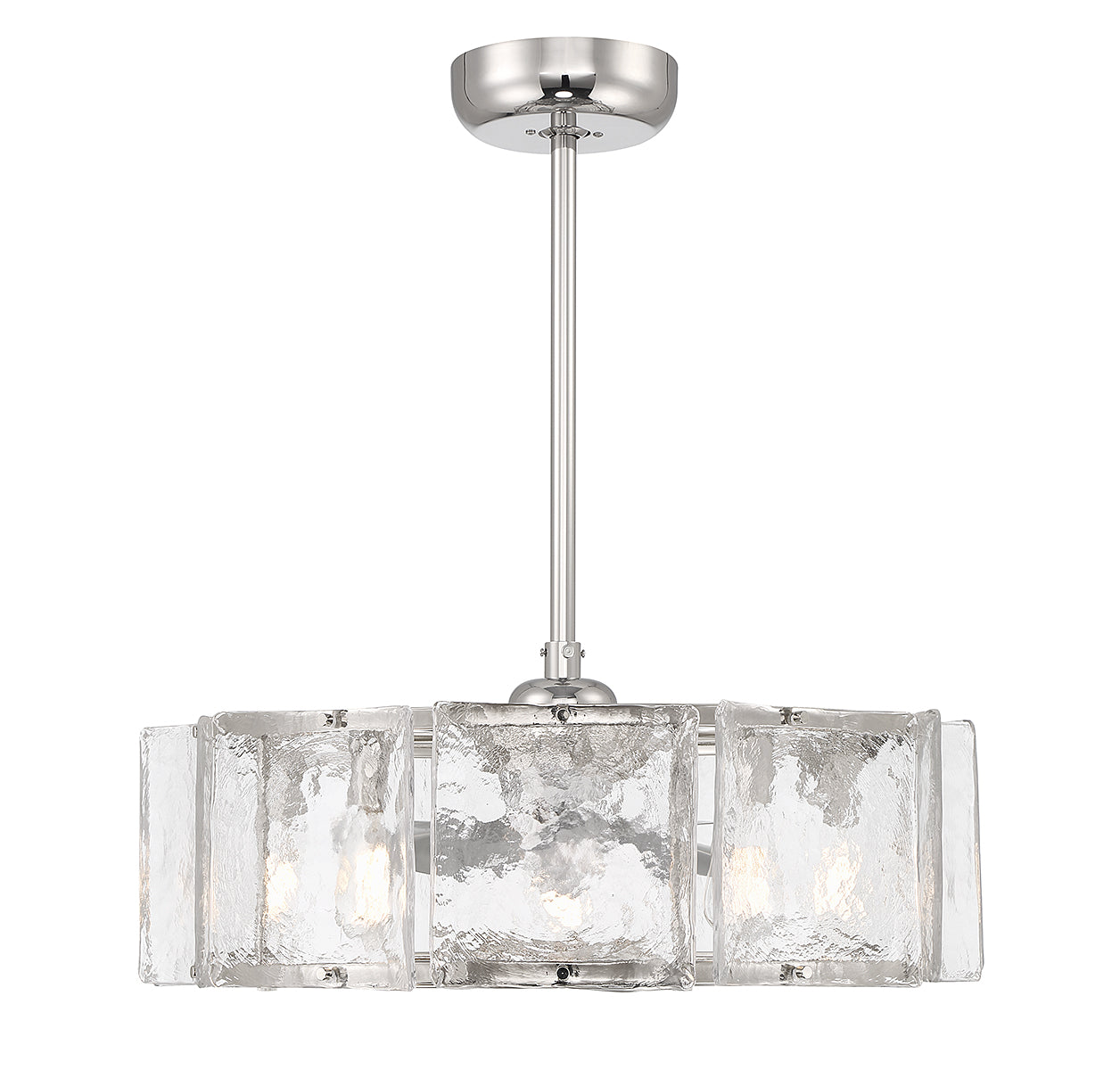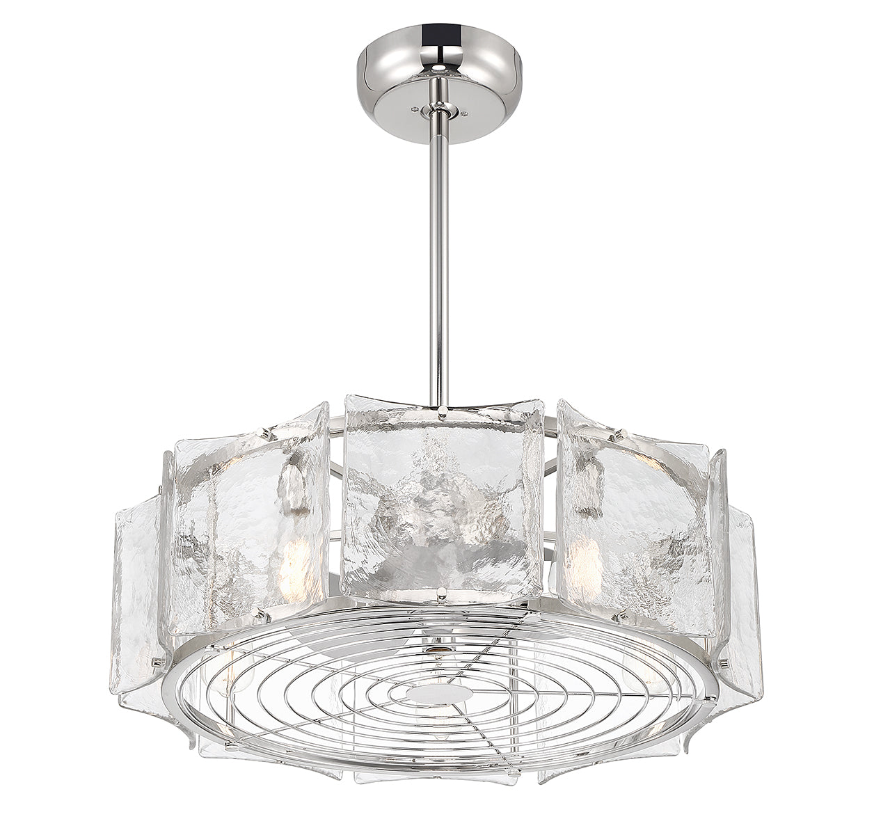 Bring a beautiful ocean-inspired lighting look to your home with the Savoy House Genry 5-light Fan D'Lier. This design is decorated with rippling panes of handmade glass and finished in polished nickel. Genry is 11.8" in height and 26.5" in width. Five 6-watt standard size LED bulbs are included. Fan D’Liers are a Savoy House exclusive that combines the best of ceiling fans with the best of chandeliers in one fabulously fashionable fixture. These custom designs are inspired by high-end designer styles and take top trends to a whole new level.