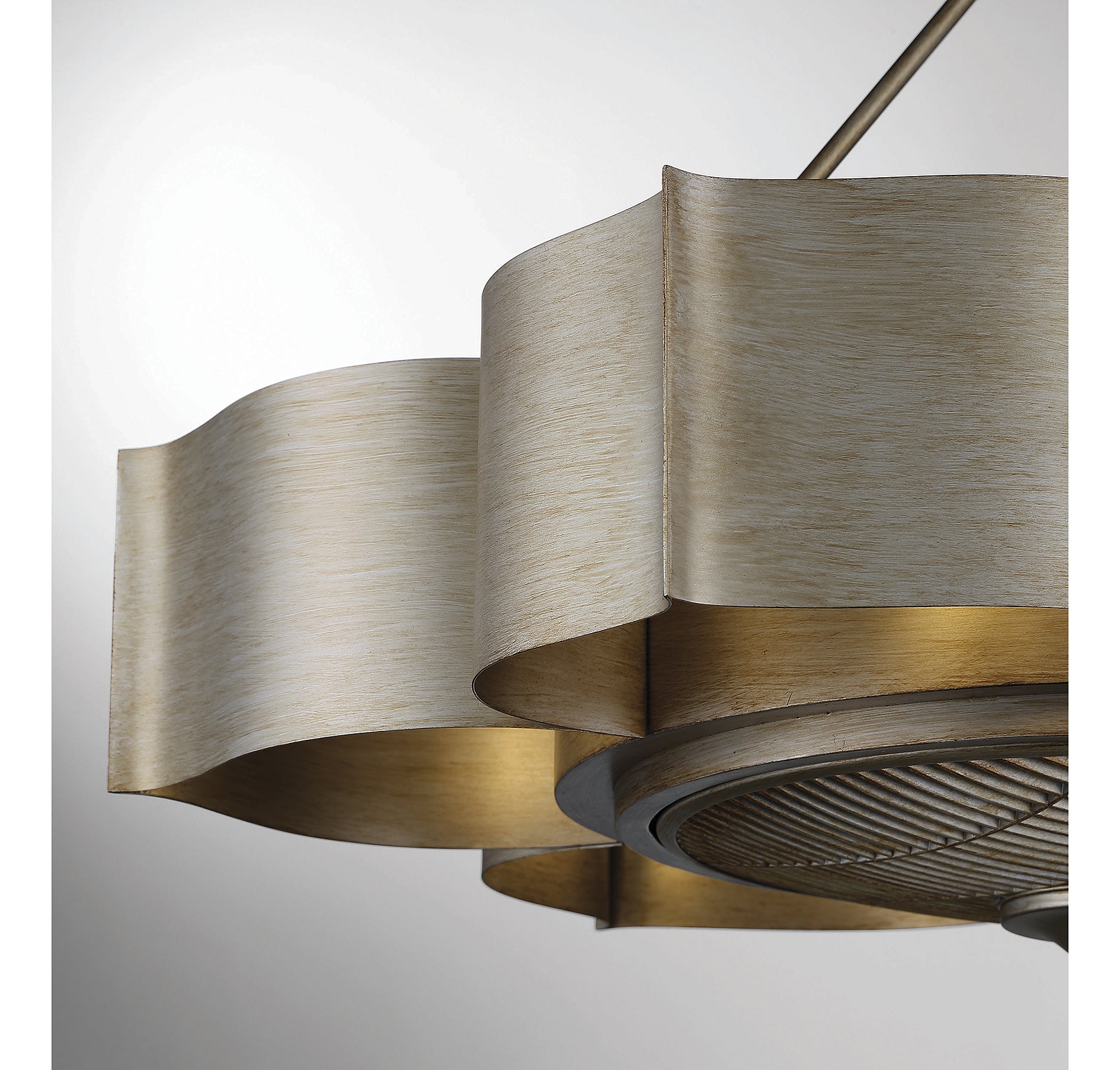The Savoy House Stockholm 6-light Fan D'Lier has an organic look and a bonus benefit. In addition to serving as a fashion-forward chandelier in a stunning Silver Patina finish, Stockholm is equipped with a functional ceiling fan cleverly concealed within its 12" high x 31" wide frame. Illumination is provided by six candelabra size bulbs.