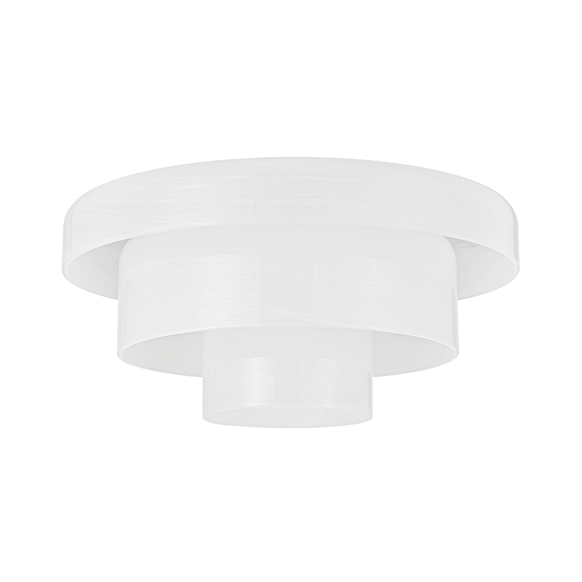 Inspired by an iconic mid-century design, this layered flush mount makes a bold style statement. Three concentric clear cloud glass shades surround a central light bulb, reducing glare. The varied heights of the glass allow the light to glow outwards from all points of the fixture.