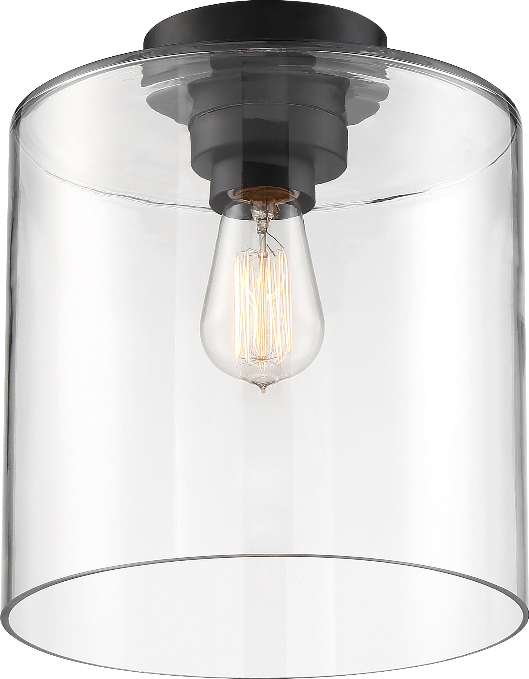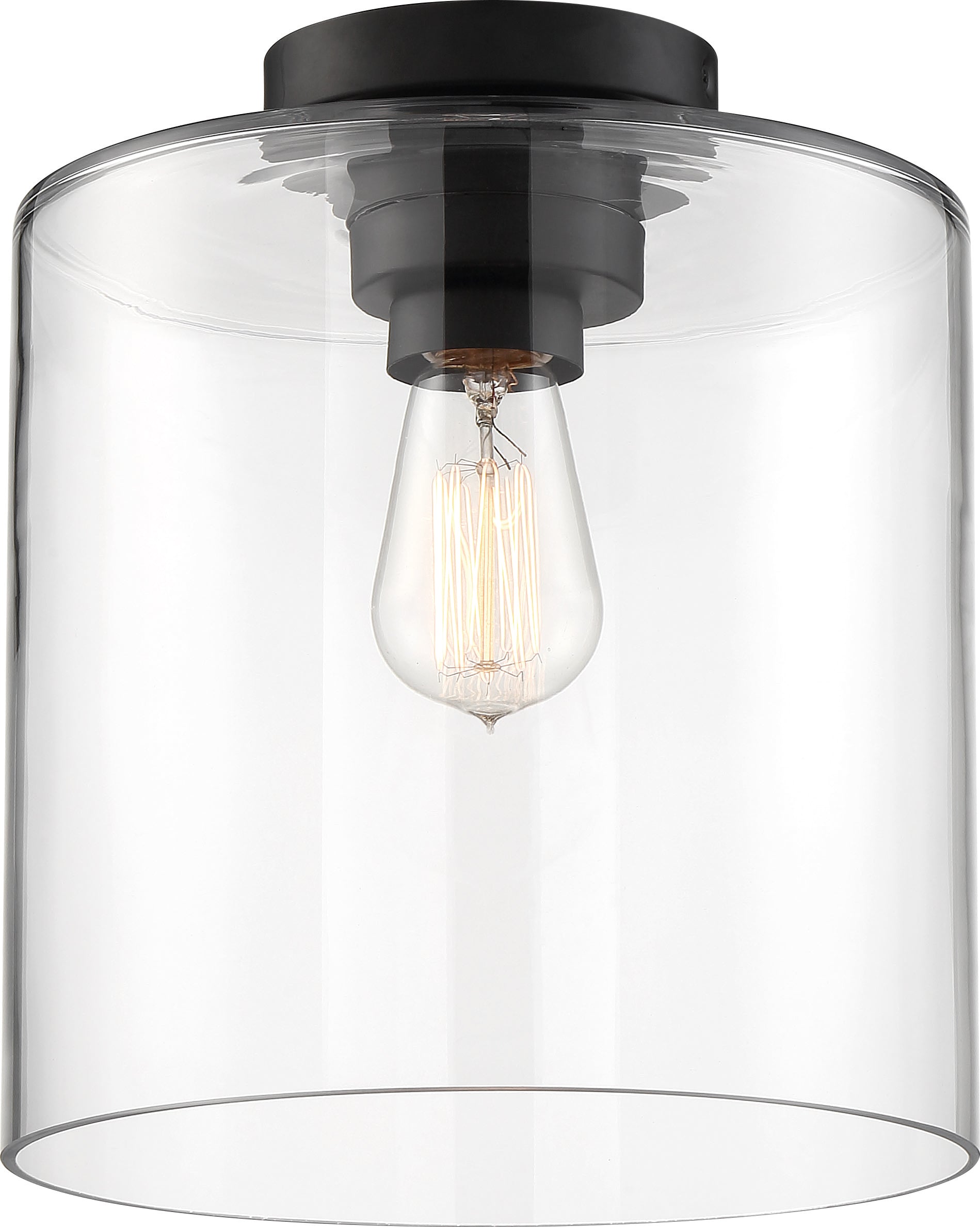 The Chantecleer 1 light semi-flush fixture is an elegant lighting solution for the home. A single A19 bulb sits inside a clear hurricane shade, creating elegance around a simple fixture finished in matte black. Sleek and contemporary, the Chantecleer 1 light semi-flush adds style to any home.