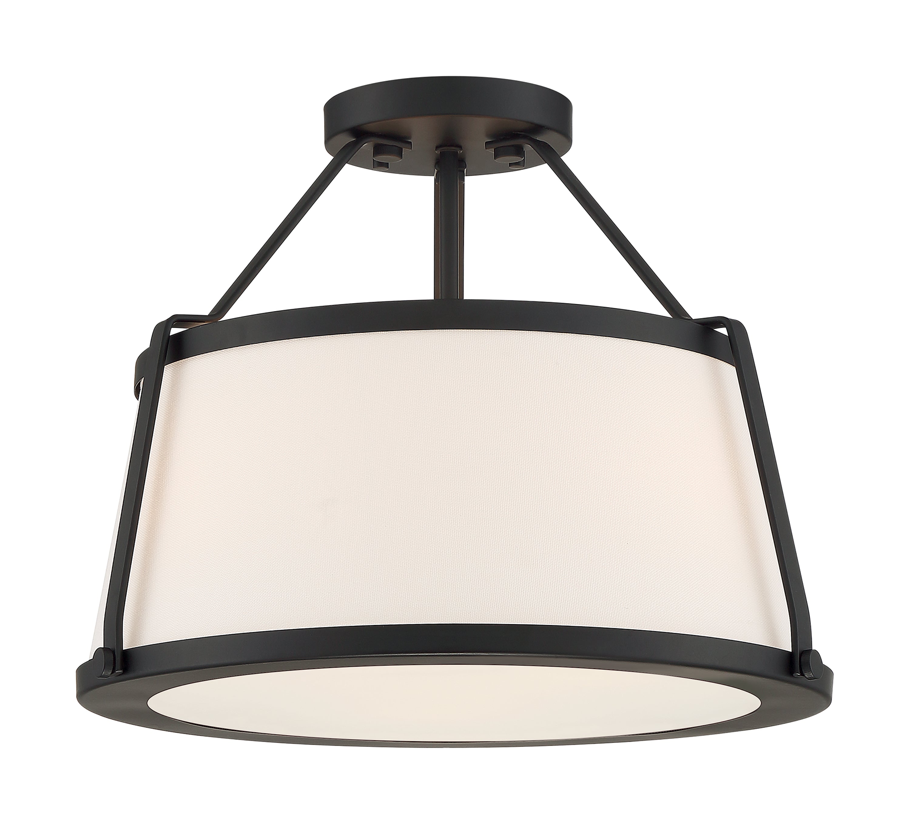 The Cutty Semi-Flush Light fixture is an excellent addition to a variety of decors. The Matte Black finish defines the transitional style. Featuring a simple Matte Black frame that encases a white linen fabric shade and frosted glass diffuser providing soft lighting for any application.