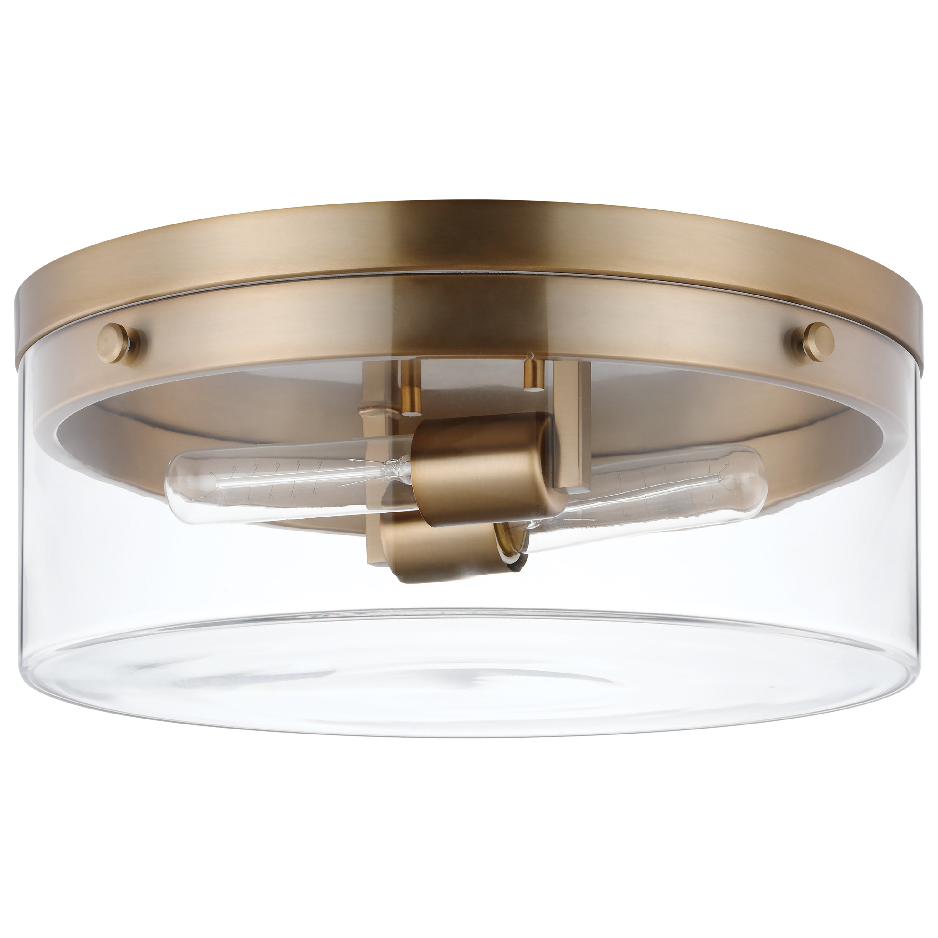The blend of styles (modern, industrial and chic) is incorporated beautifully in the design of the Intersection small flush mount. The clear glass shade showcases the vintage filament bulbs for a touch of nostalgia. The luster of the rich, burnished brass will pair superbly with existing finishes. Apply to a hallway, mudroom, or in an entryway. The intersection is a stylish addition to any room.