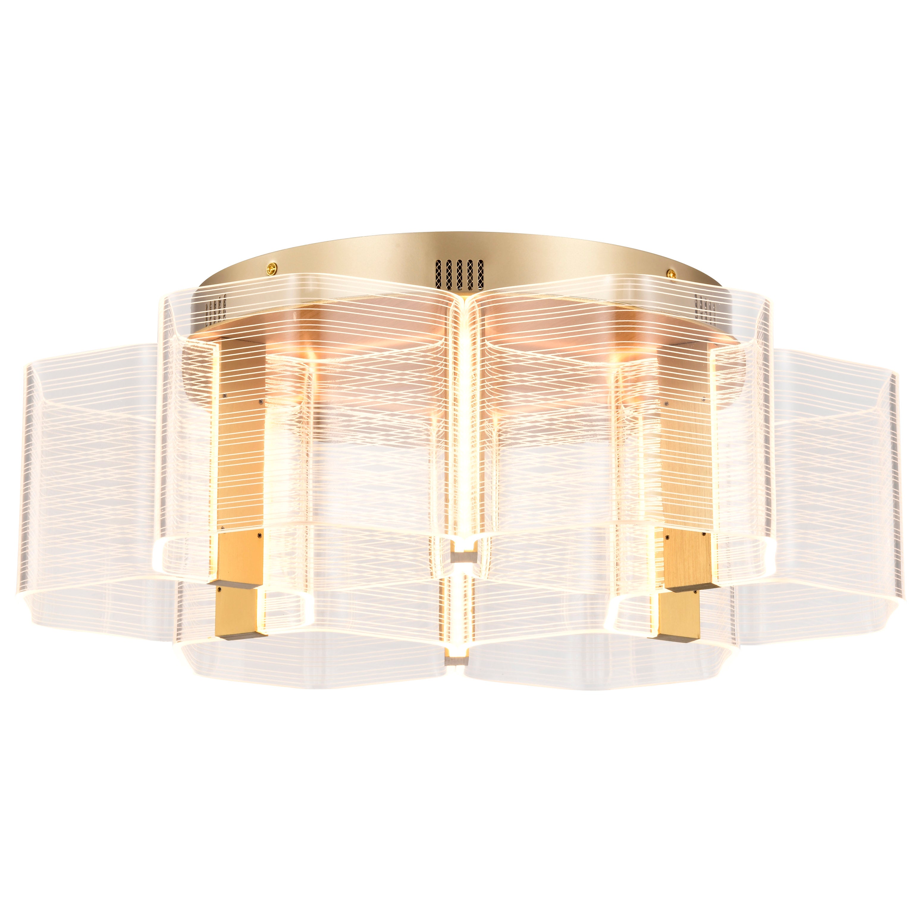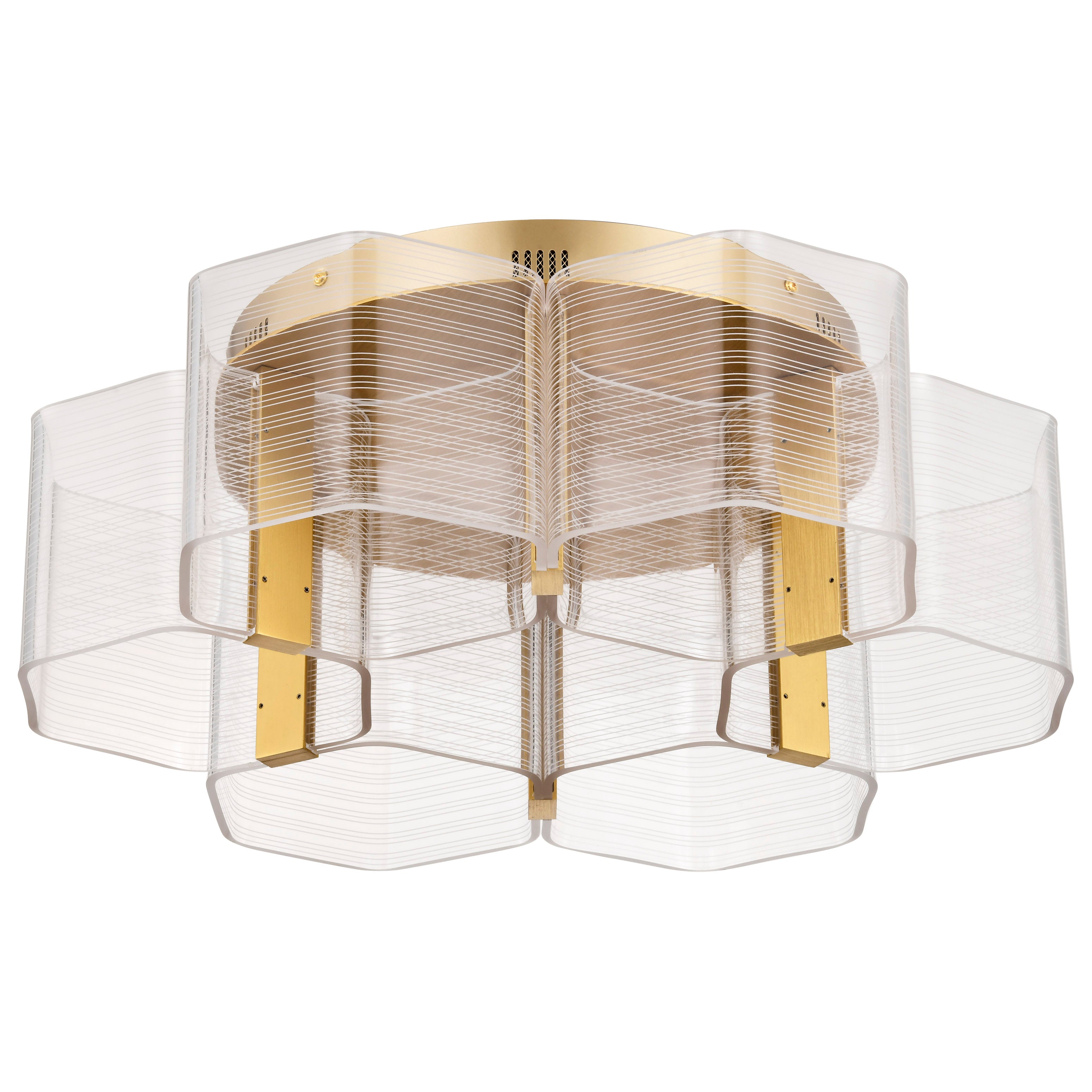 Unveil the art of Modern design with the Kenzo Collection, where bold geometric styling meets sculptural elegance. The parallel lines create a dynamic visual effect, blending symmetry with artistry for a look that captivates. Edge-lit acrylic shades provide a warm, ambient glow, beautifully enhancing the collection's striking vintage brass finish. Perfect for those who appreciate imagination, it is more than lighting in motion, it's a statement to the ingenuity and style of today's luminaires.