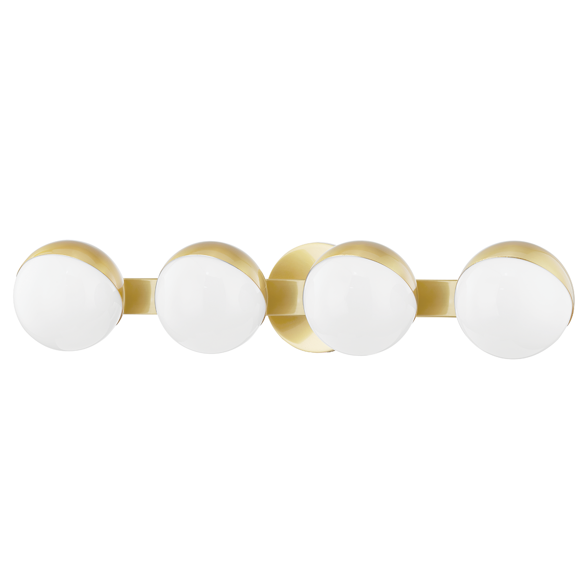 Paying homage to the 1960s, the slightly askew, large, opal-gloss globe shades fill a space with big, bright light. Topped with metal caps in Aged Brass or Polished Nickel and available as a one, two, three or four-light sconce, Lodi works well in the bath or any other room in the house.