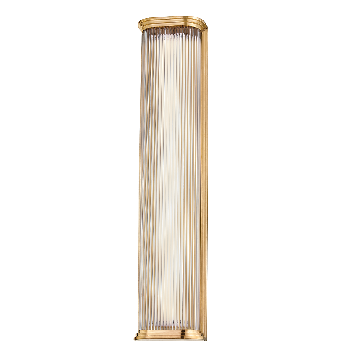 Newburgh gives new life to the classic glass rod sconce. A soft rectangular metal frame with stepped detailing holds clear glass rods that make up the shade of this art deco-influenced design. Available in two sizes and two finishes, Newburgh would work wonderfully in a bath or home theater setting.