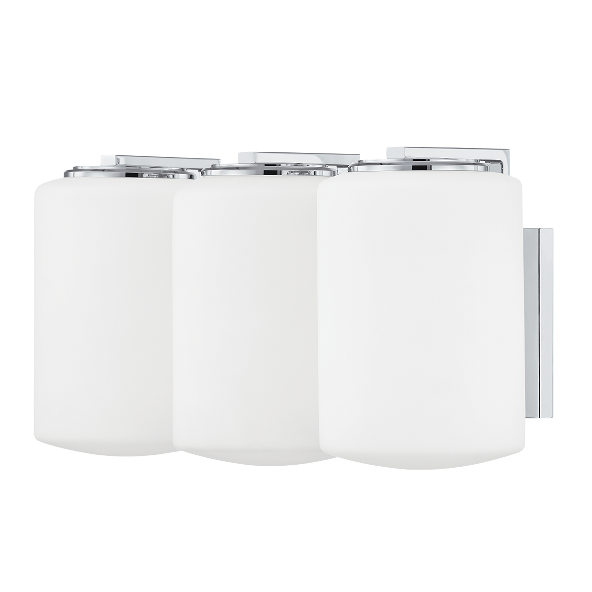 With shades large enough to nearly hide the backplate, these bath and vanity fixtures appear to hang in midair. Bulbs enclosed inside the opal matte cylindrical shades give off a soft glow. Polished chrome accents at the shade top, arm and backplate give the fixture a clean look.