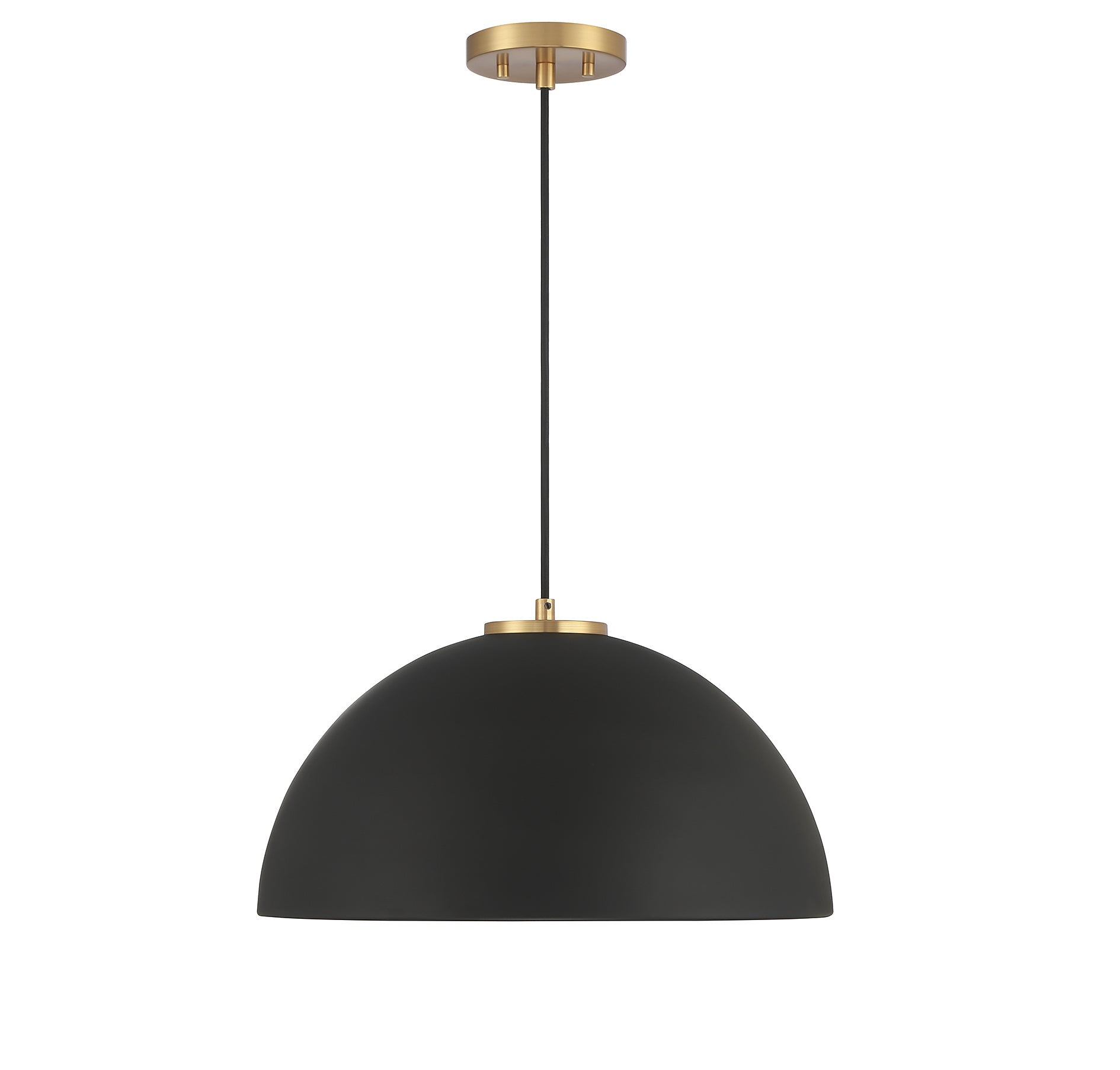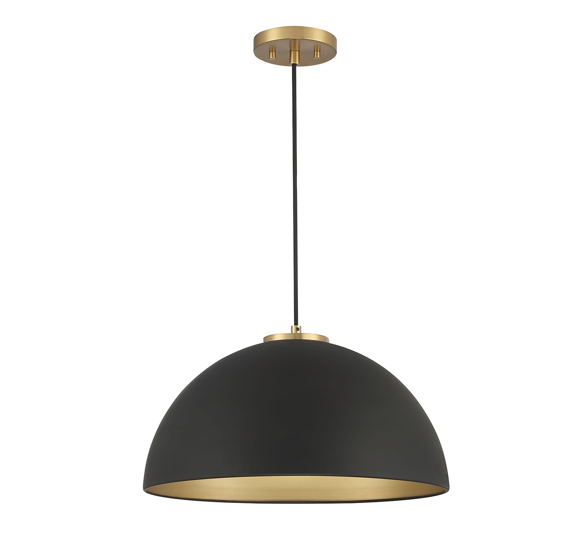 Bring a bold touch of vintage industrial style to any space with this 1-light pendant. It features a solid metal shade, eye-catching detailing and a matte black finish with natural brass. 10" height, 18" width. Uses standard size bulb, max 60 watts. LED bulb compatible.