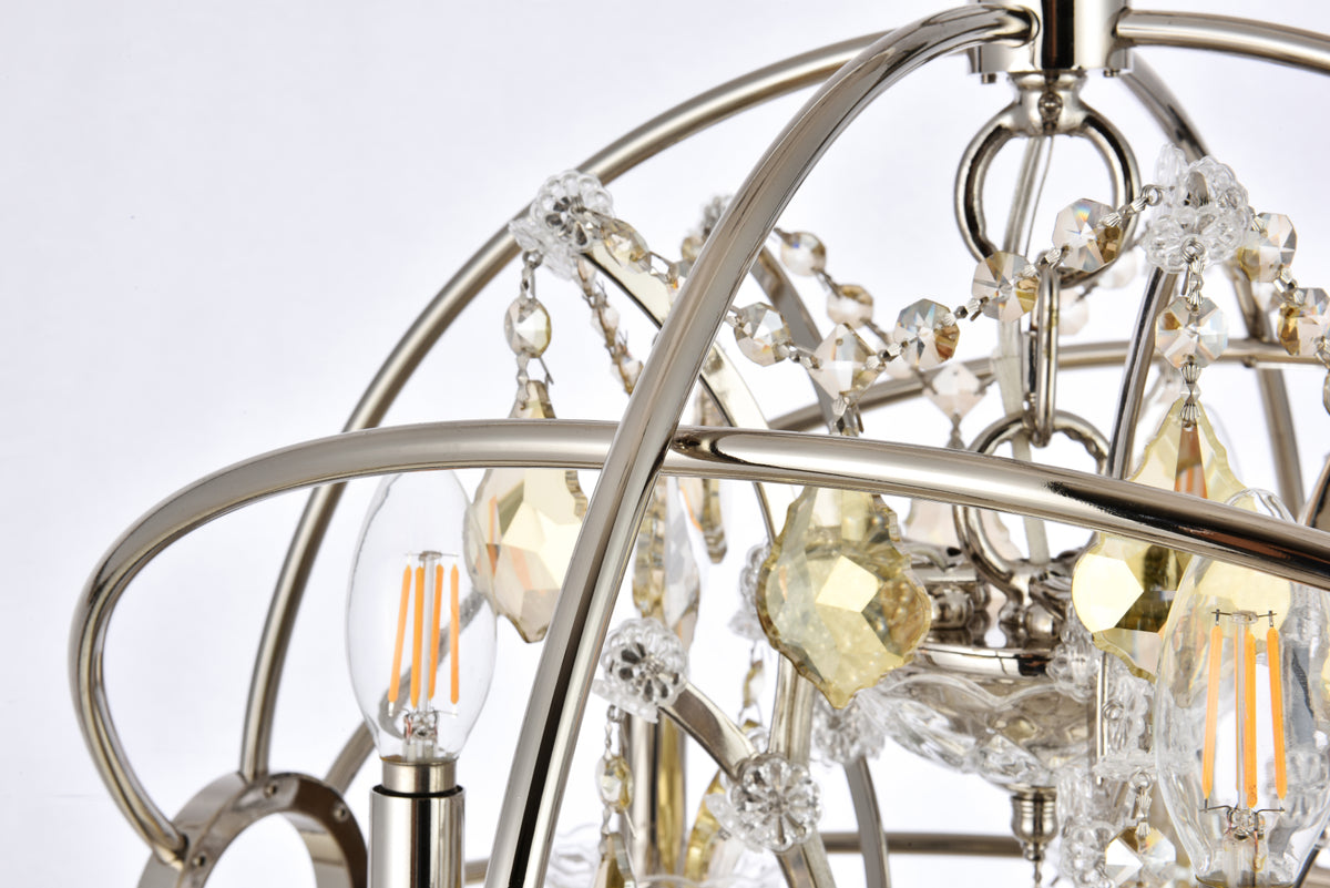 Geneva 5 light polished nickel Pendant Golden Teak (Smoky) Royal Cut crystal