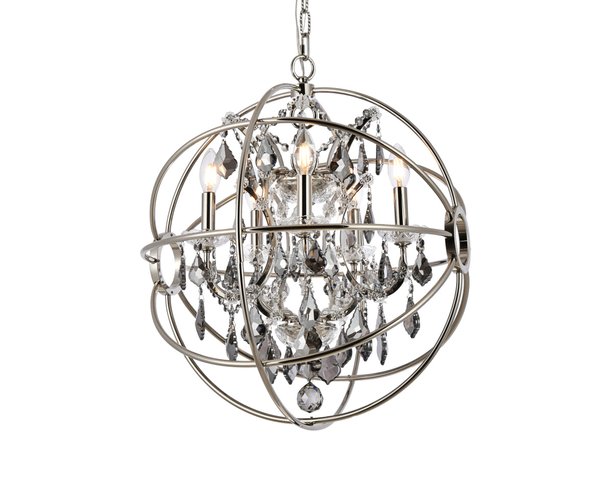 Geneva 5 light polished nickel Pendant Silver Shade (Grey) Royal Cut crystal