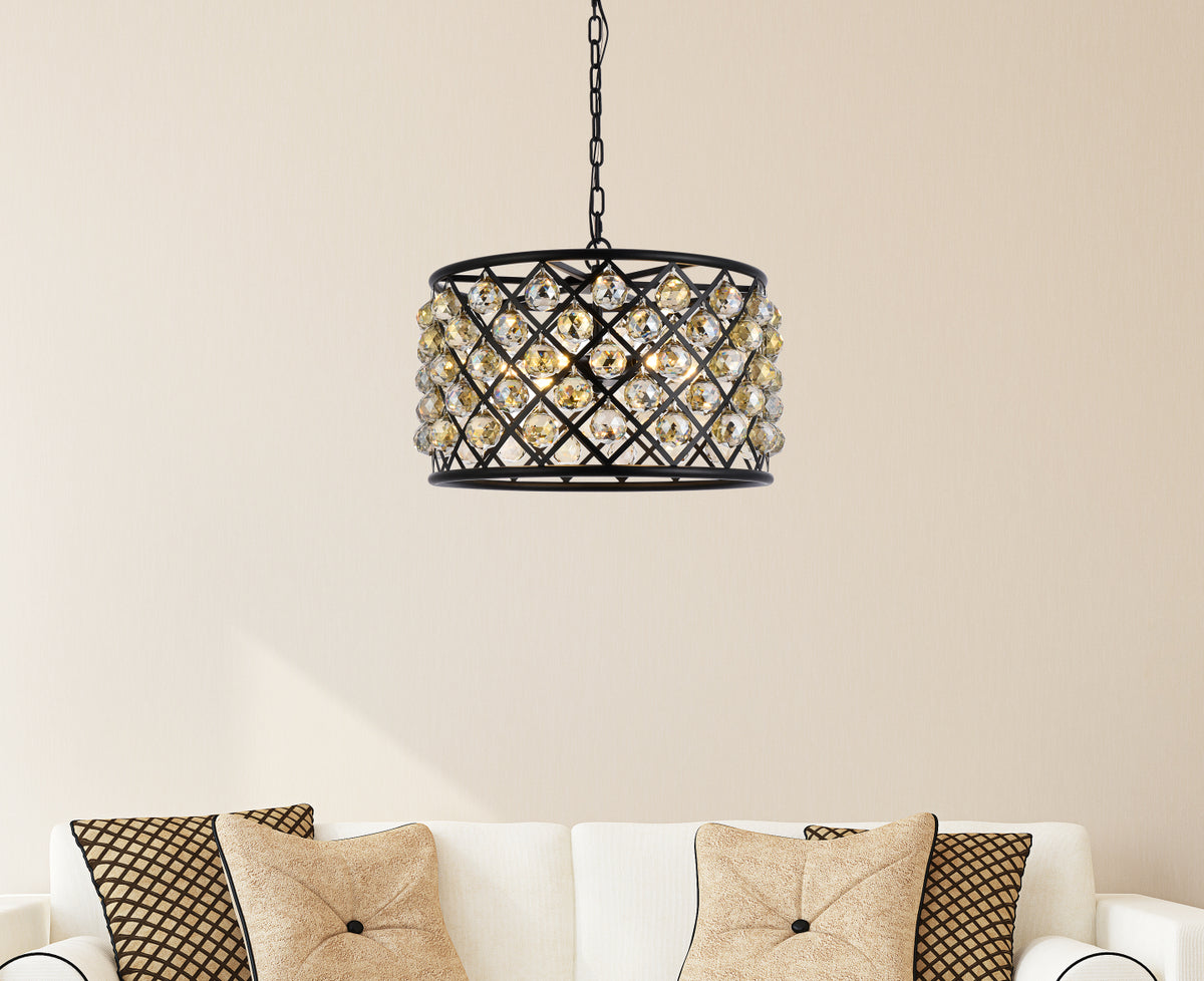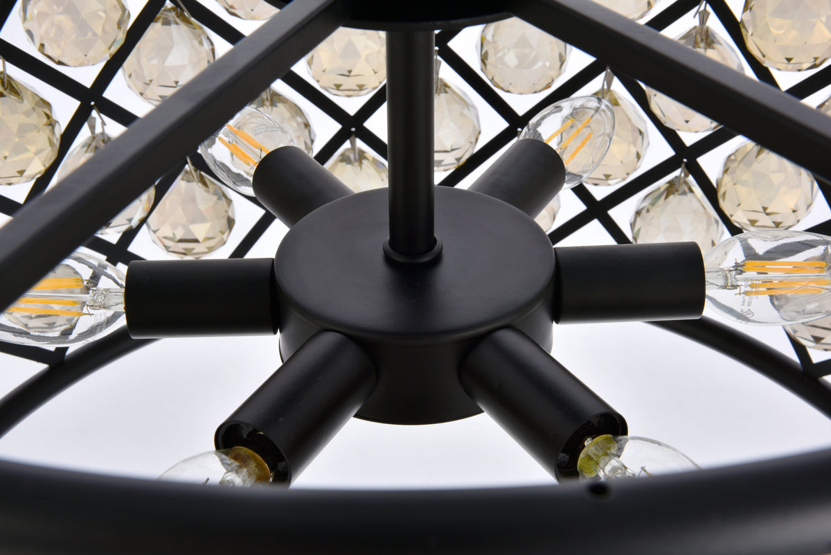 Madison 6 light Matte Black Pendant Golden Teak (Smoky) Royal Cut Crystal