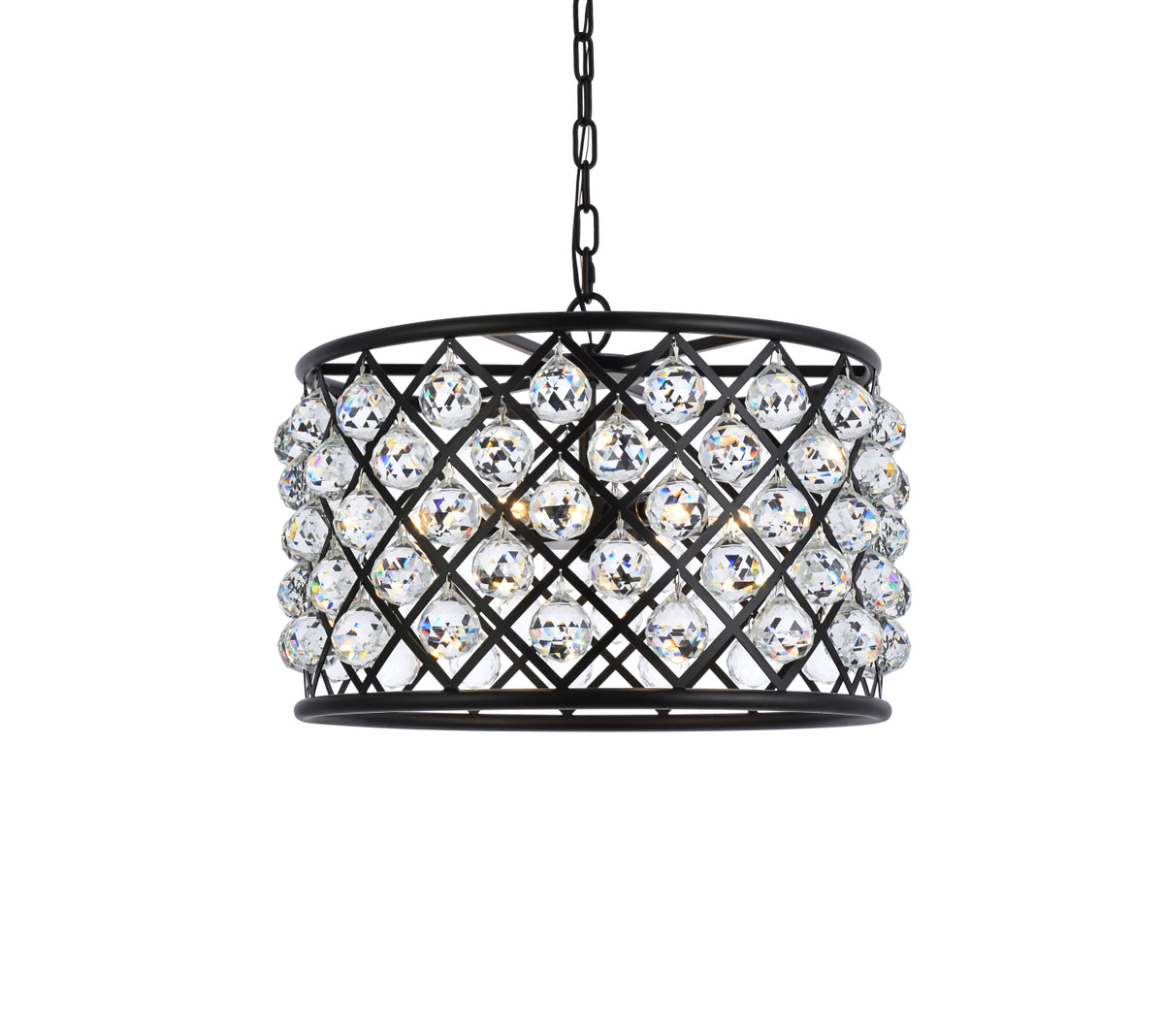 Madison 6 light Matte Black Pendant Clear Royal Cut Crystal