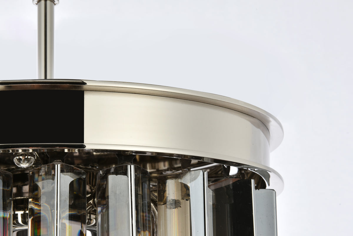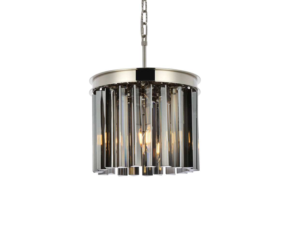 Bring the splendor of the ballroom into your home with a sparkling Sydney fixture. Stunning in foyers, dining rooms, or stairwells, the Sydney collection brings to mind the glamour of the Roaring Twenties. Features glimmering tiers of royal-cut clear, golden-teak, or Silver-shade crystals. In mocha-brown or polished-nickel finishes, this sturdy, yet delicate, pendant lamp will be the perfect centerpiece for any décor.