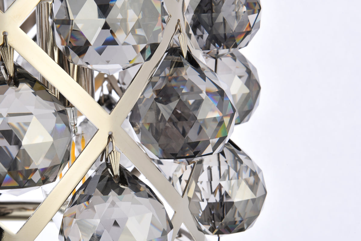 Modern simplicity meets organic beauty in the breathtakingly unique Madison collection. Hand-polished, multifaceted clear, golden-teak, or Silver-shade crystal spheres shimmer like dewdrops in a circular forged-iron grid with a golden-iron, mocha-brown, or polished-nickel finish. These airy pendant lamps will brighten up a kitchen, dining room, foyer, or stairwell in an explosion of reflected light.