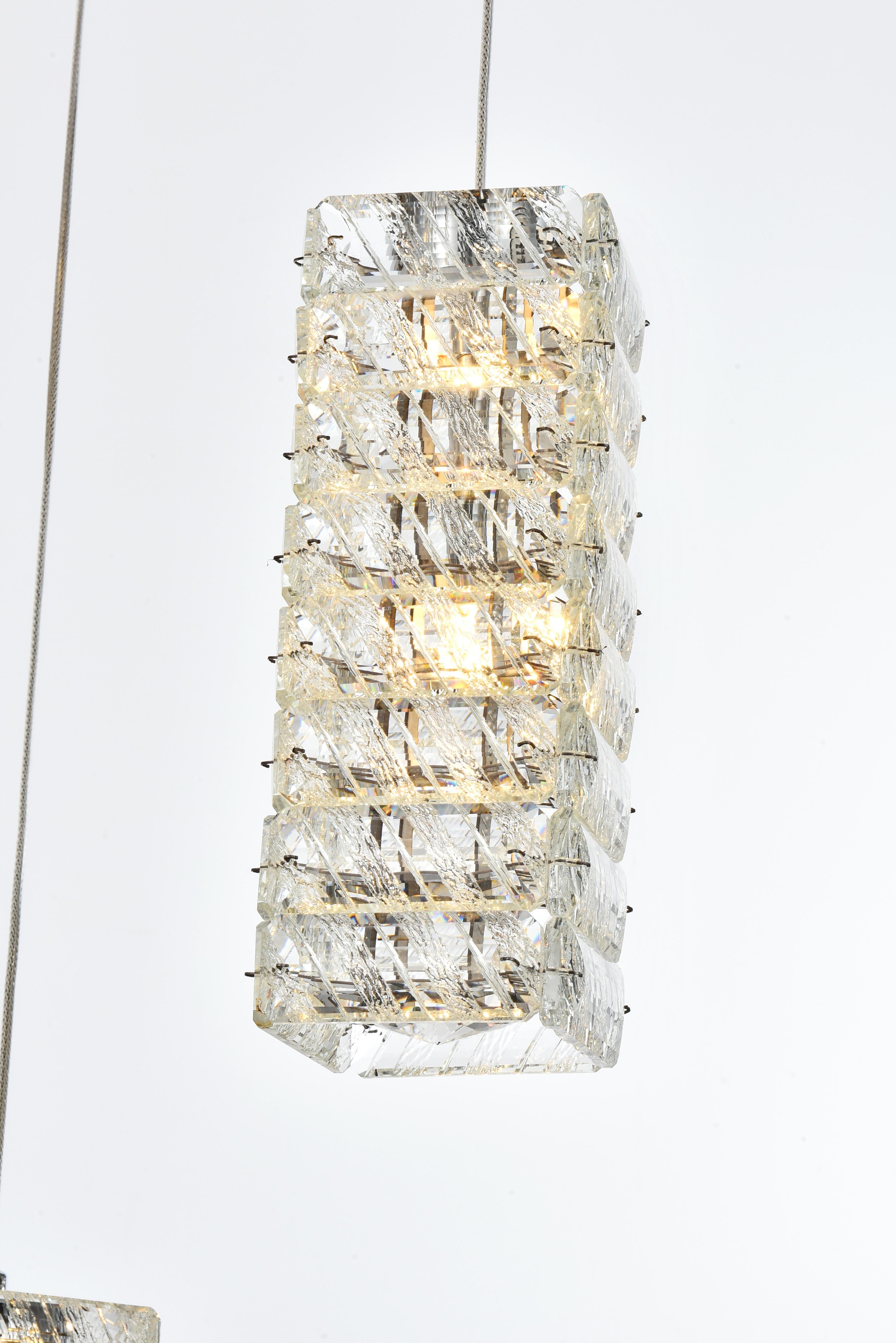 Elevate the ambiance of your space with this exquisite Crystal LED Pendant Light. Featuring a sleek four-sided rectangular shape, this pendant is adorned with clear crystals that resemble elegantly stacked ice. The addition of a round crystal diffuser at the bottom enhances the light's radiance, making it a focal point in any room. Transform your home with the Crystal LED Pendant Light, combining modern design with high functionality. Its sophisticated crystal design, adjustable lighting, and customizable hanging configurations make it a perfect addition to any contemporary space. Illuminate your home with style and elegance today.